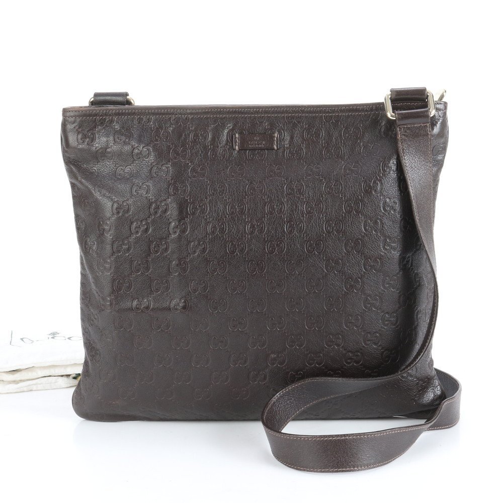 1円■極美品■グッチ■グッチシマ 201446 レザー ショルダーバッグ 斜め掛け メッセンジャー ブラウン 茶色 メンズ EUE CX34-5