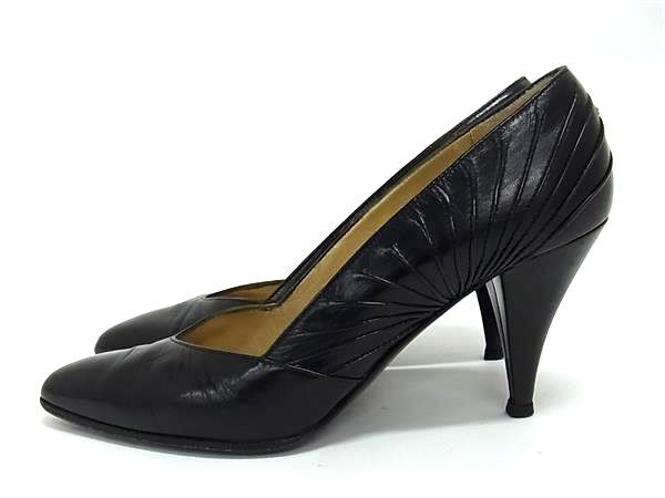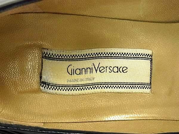 GIANNI VERSACE ジャンニ ヴェルサーチ レザー ヒール パンプス 表記サイズ34 1/2(約21.5cm) 靴 シューズ ブラック系 DK5314