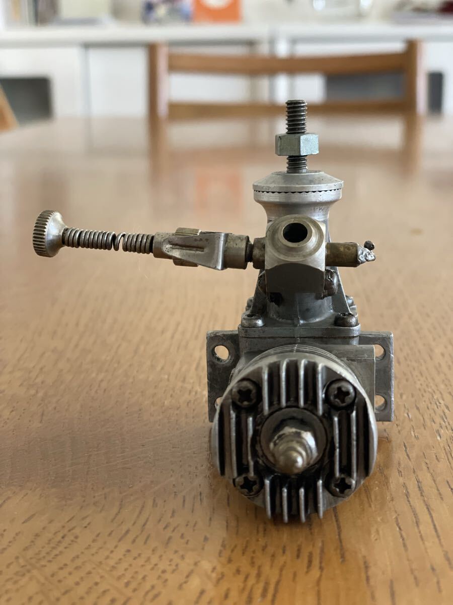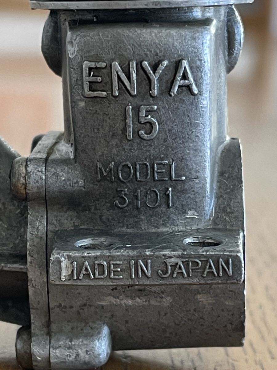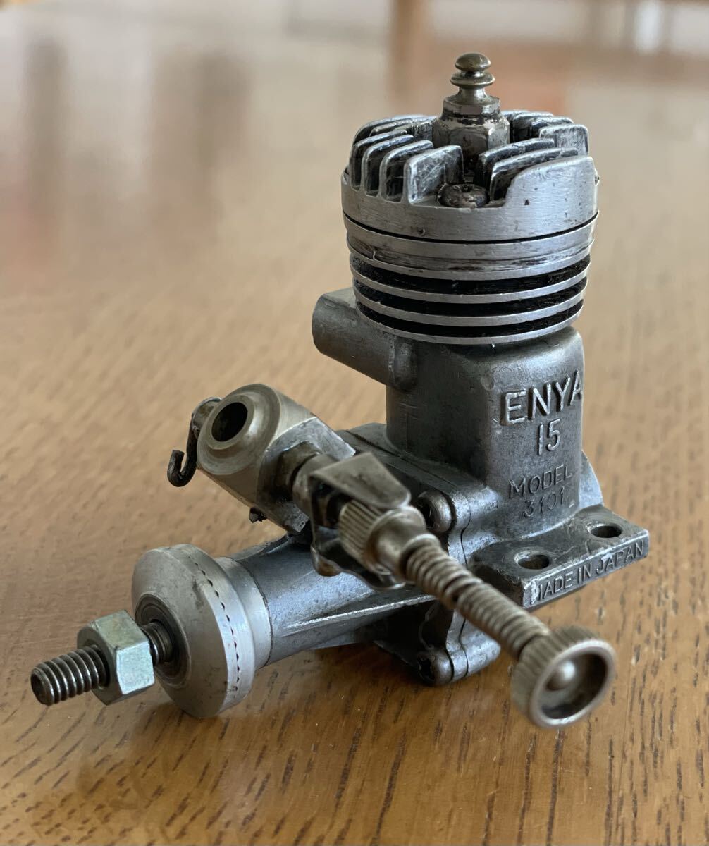 エンヤ(塩谷製作所)初期型の15エンジンスロットルバルブ付きです。ピストン及びスロットルバルブ共に固着はありません。MODEL3101とクランクケースに示されています。大変古い物なので細かい事が気になる方はご遠慮頂きたくお願いします。