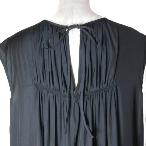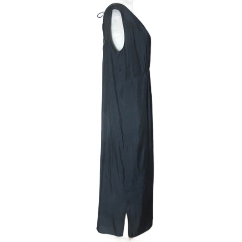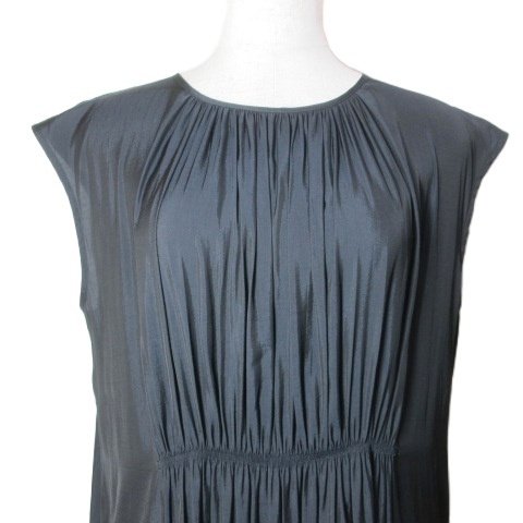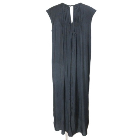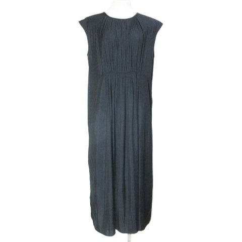 シップス カッセンワンピース 314-52-2189 ロング ギャザー キャップスリーブ シルク調 36 S相当 紺 ネイビー /X レディース