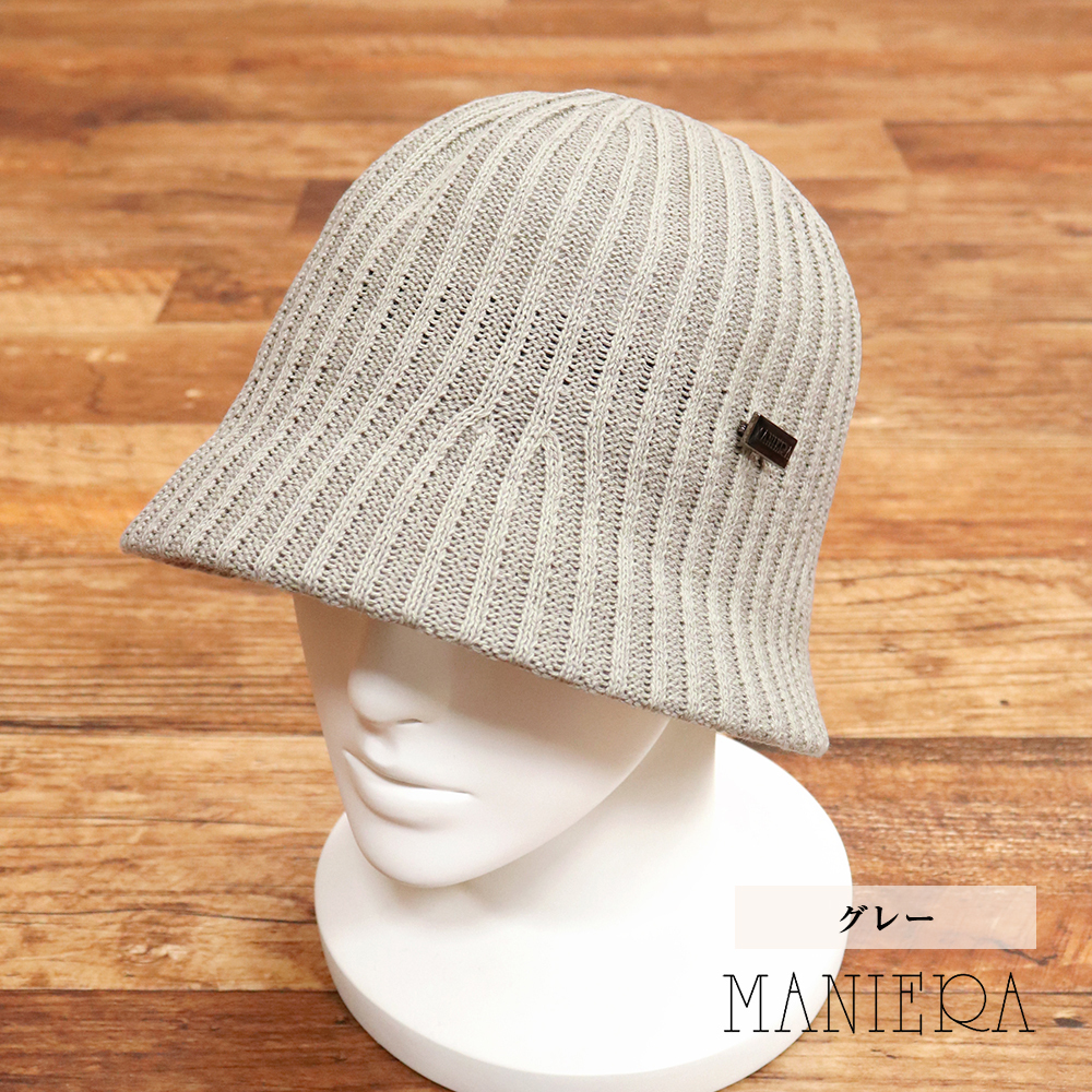 1円/MANIERA/リブ クロッシェ サーモ ハット 日本製 バケットハット 帽子 男女兼用 マニエラ 新品/グレー/kf370/