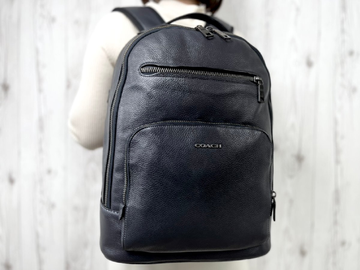 | 極美品 COACH コーチ バックパック リュックサック バッグ レザー 紺 A4収納可 メンズ 92270 | ||
