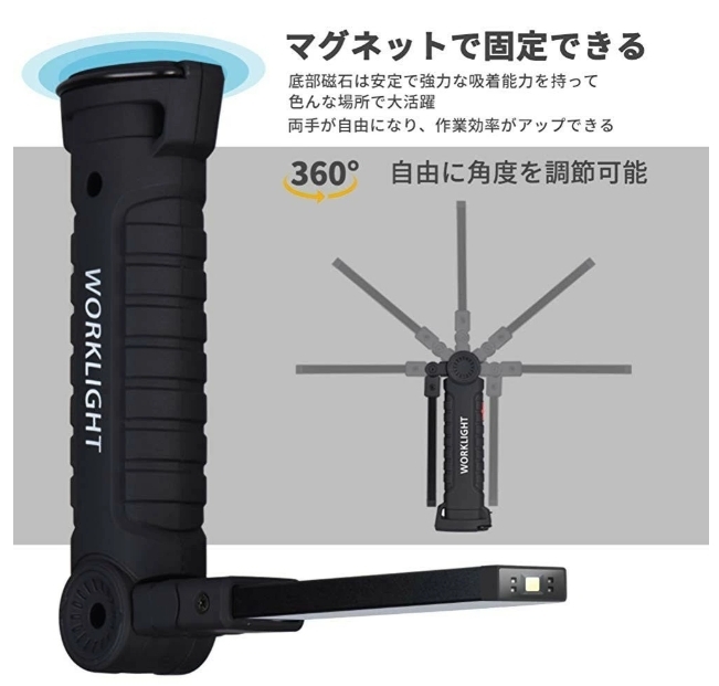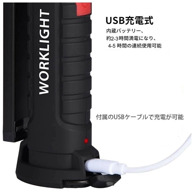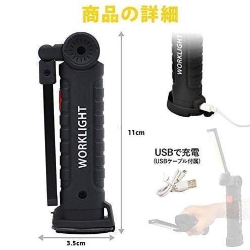 作業灯 ワークライト 防災 COB ハンディライト USB 充電 LEDライト 懐中電灯 マグネット 災害用品 折り畳み式 360度回転 赤色灯 点滅 整備