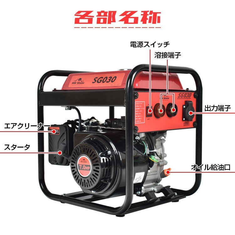 エンジン溶接機 発電機兼用溶接機 ガソリンエンジン溶接機 100V 最大出力1000W 定格使用率50% MMA 照明 電源 金具 門扉 補修 鉄板 sg030