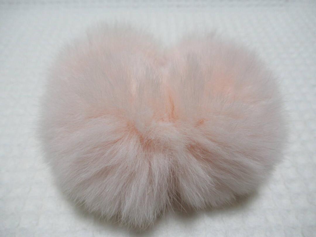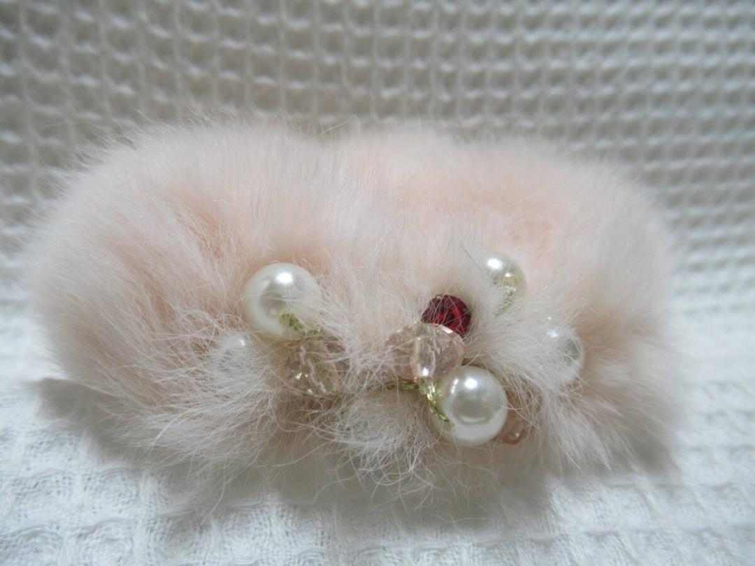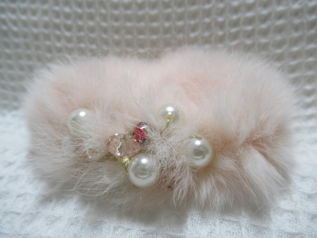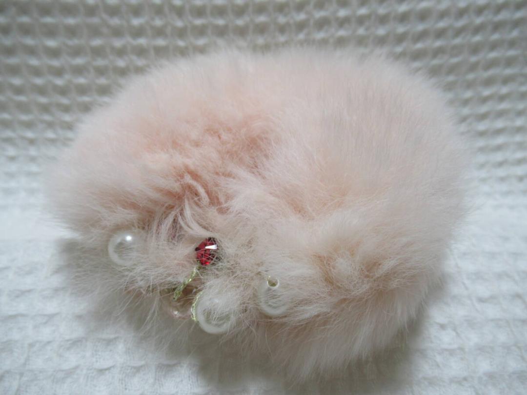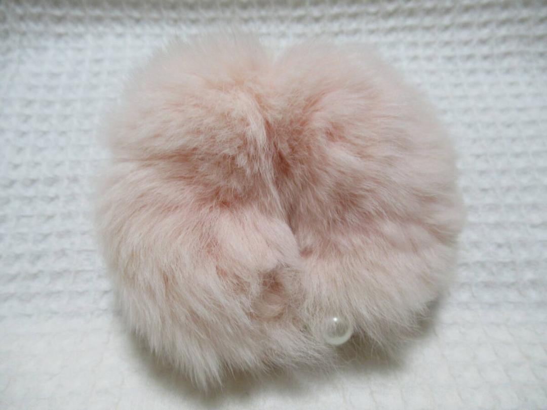 パール・クリア系(ピンク・レッド)系色のビジュー付き ライトピンク系色フェイクファーシュシュ