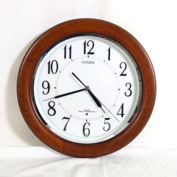 【動作確認済】リズム時計工業 CITIZEN 8MY461-006 夜間自動点灯ライト スムーズ秒針 静音秒針 電波時計 掛時計 茶色半艶仕上(白/100
