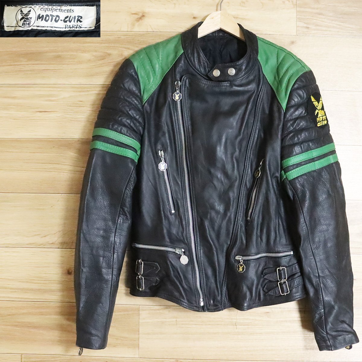 I5T/D10.15-1 70s~ ビンテージ MOTO-CUIR セミダブルライダース 本革 シングルライダース 革ジャン 皮ジャン