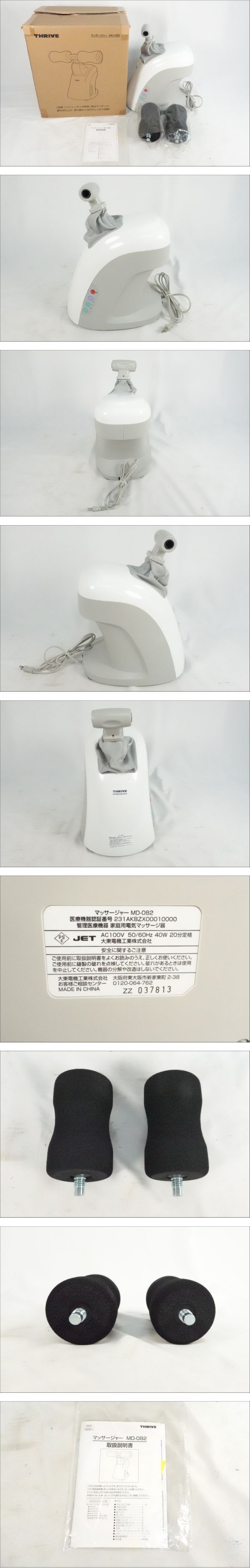 メーカー名:THRIVE 商品名:家庭用マッサージ機 型番:MD-082 付属品:外箱、取扱説明書 状態:譲り受けた商品の為、購入時期や使用頻度など詳細は分かりかねます。 傷や汚れがございます。 素人の目視確認の為、見落としがある場合もございます。 素人の為、ご質問いただいても回答できない場合がございますが、 画像を追加致しますので、欲しい写真があった場合ご質問頂ければと思います。 ID:3138362025-6261 弊社はインボイス登録事業者です。 登録番号:T8370001039877 ※※入札前に必ずお読みください※※ 説明文をよくお読みの上ご入札下さい。 画像に写っているものが全てになります。 商品の重さを量っているものに関しては多少の誤差がありますので、ご理解下さい。 商品の状態に関してはご自身でご判断の上、ご入札下さい。 あくまでも主観に基づく感想です。状態判断は画像にてお願い致します。 商品に対しどちらの情報が欲しいか分かりかねる部分もございますので、落札前にご質問頂ければと思います。 中古品の為、神経質な方のご入札はお控え下さい。 ご入札後の入札取り消しは出来かねます。 専門知識がなく、ご質問いただいても回答できない場合がありますが 気になる点がある方は入札前にご質問下さい。 素人による検品の為、見落としている場合もございます。 ご了承下さい。 ノークレーム・ノーリターンでお願いします。 | |||