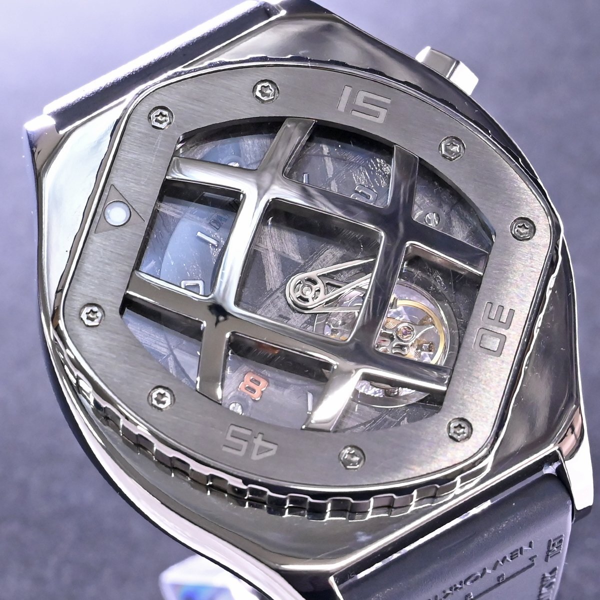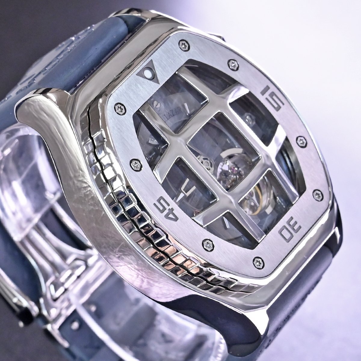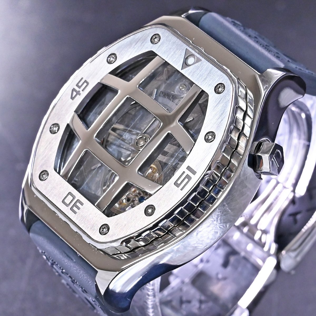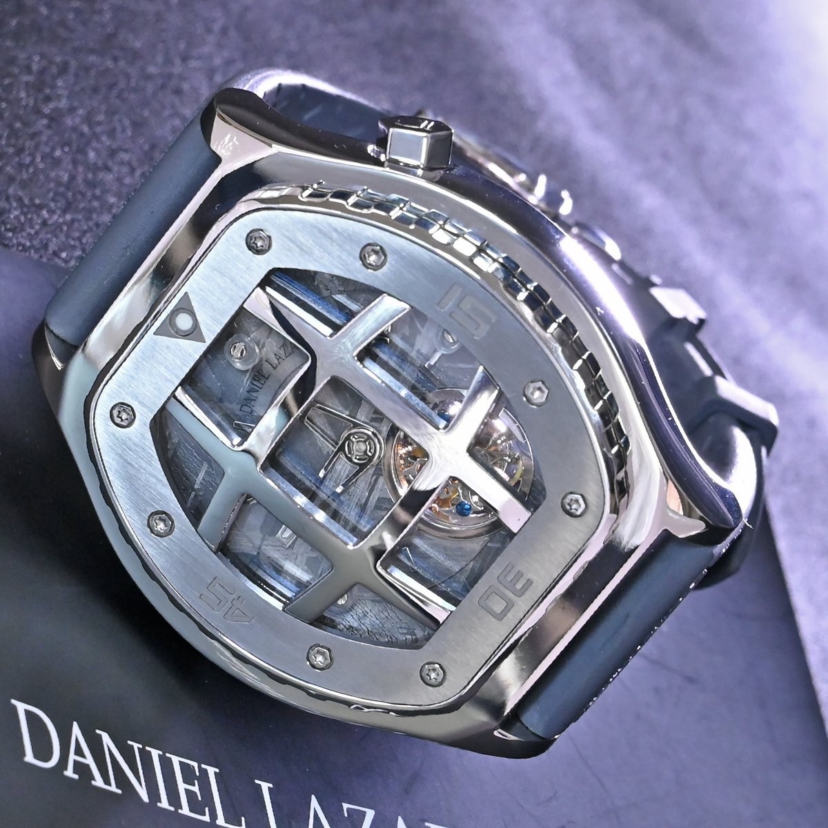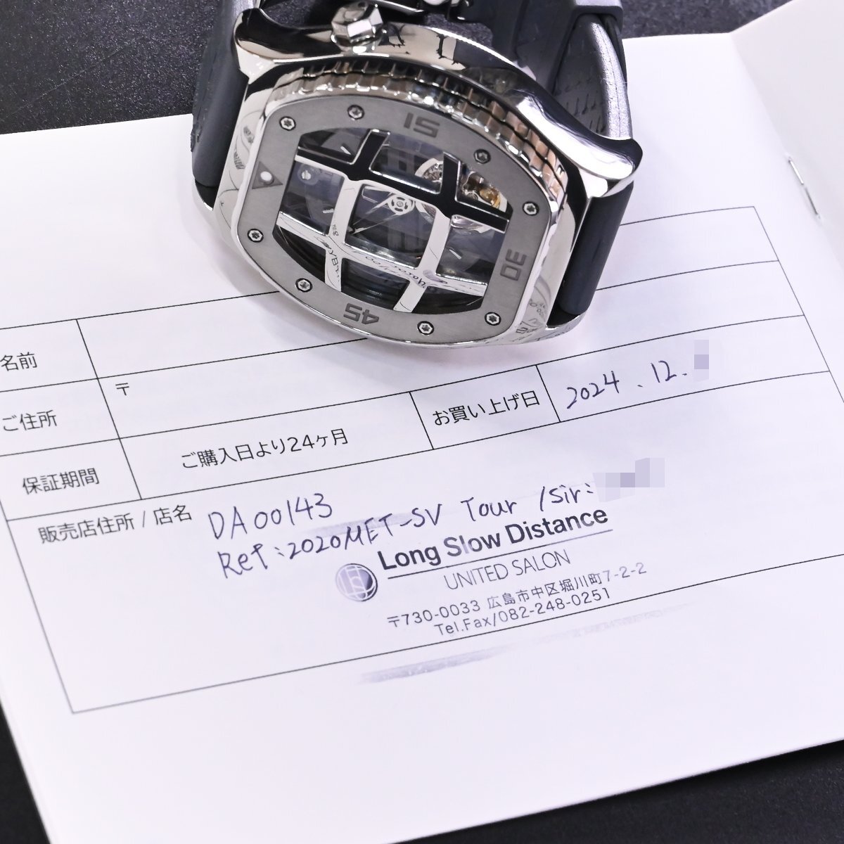 ティレット by ダニエルラザーのトゥールビヨン メテオライトです。 著名セレブが愛用するニューヨーク生まれの時計ブランド「ティレット」のCEO兼創設者のダニエル・ラザー氏自身のブランド。 超高級機械式時計の複雑機構である「トゥールビヨン」を搭載し、文字盤にはメテオライトを採用しました。 トノー型としては異例の回転ベゼル方式を採用したコンベックスグリッドが特徴的な一本です。 市場にも全く出て来ないメゾンのお品なのでお探しの方も非常に多いかと思います。 ※基本動作確認済。 |