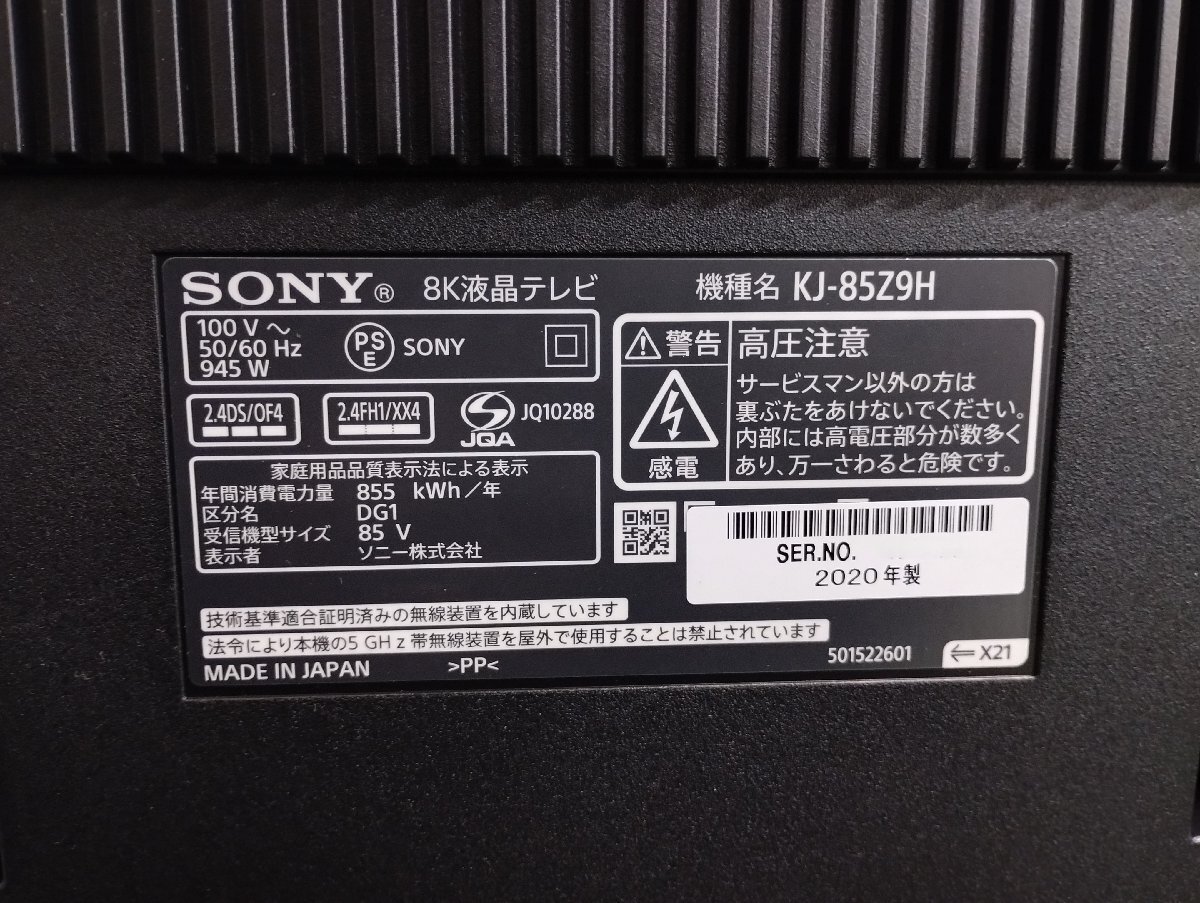 | ♪SONY KJ-85Z9H ソニー 85インチ 8K液晶テレビ BRAVIA(ブラビア) 85V型/4Kチューナー内蔵/8Kチューナー内蔵/AndroidTV 動作確認済・中古♪ |