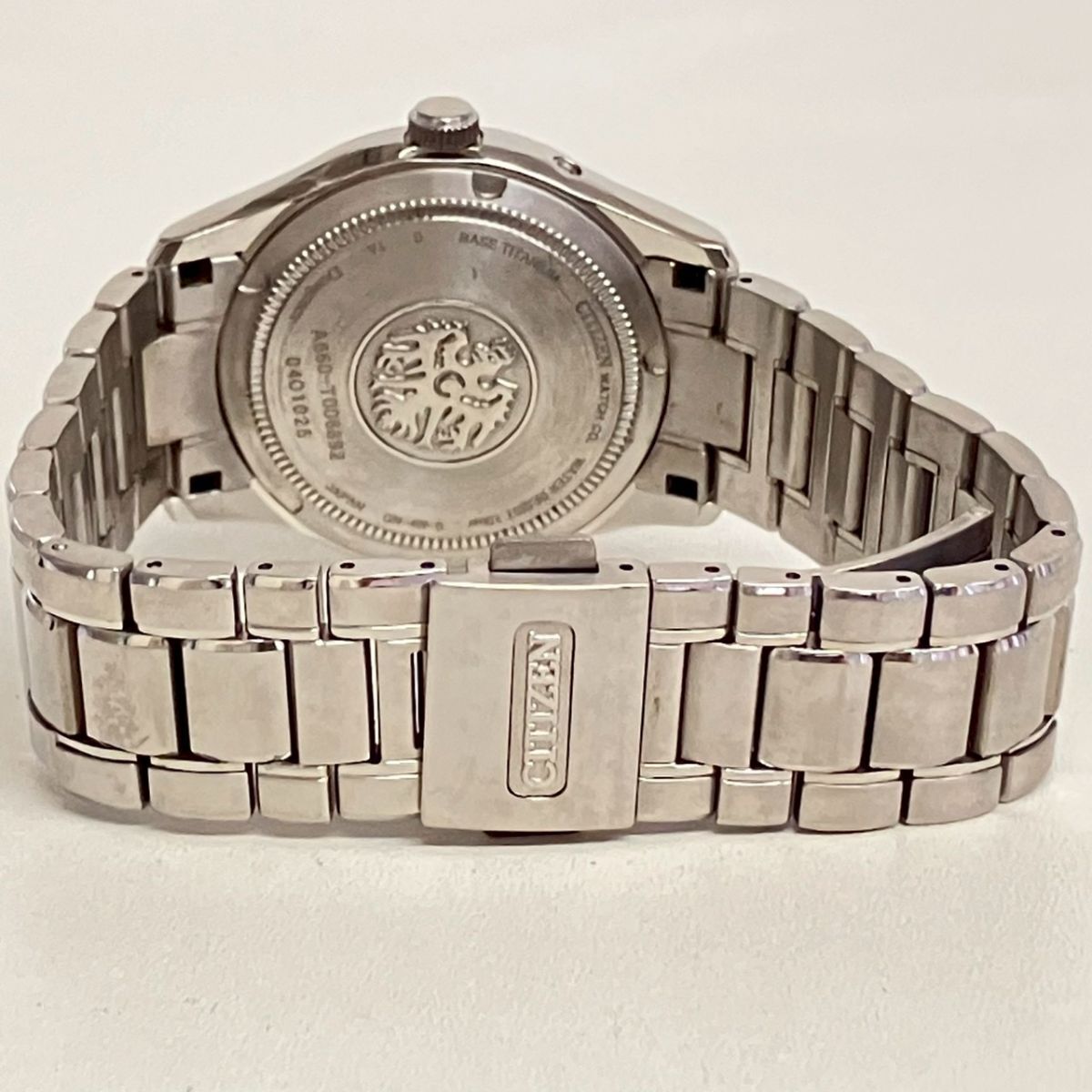 取り扱っている商品は未使用・未開封も含め、全て一度は人の手に渡った一点ものの中古・ジャンク扱いでの商品です。 当方素人ですので肉眼で確認できる簡易的な検品、採寸、および簡易梱包となります。 ※稼働の記載につきましては秒針等の確認のみとなり、全体の動作を保証するものではございません。 また、出品時の中古品の動作状況となりますので、予めご了承の上でご入札ください。 不動の表記につきましてはクォーツ式のムーブメントの場合、動作未確認の状態となります。 電池交換後、不具合があった場合でも返金、返品の対象とはなりませんので、予めご了承くださいますようお願い致します。 細かな日差、オーバーホール状況、社外パーツの使用に関しては保証しかねますので、ご理解いただけた上でのご入札をお願い致します。 上記を踏まえた上で中古品、ジャンク商品として出品させていただいておりますので、全てご理解いただけた上でのご入札をお願いいたします ------------------------------------------------------------------------- 【メーカー】 CITIZEN 【モデル名】 ザ・シチズン 【型番】 A660-T006892 【シリアル】 04O1025 【サイズ】 直径約3.8cm 腕回り約18cm 【付属品】 画像参照 【稼働状態】 稼働 【その他状態】 リューズ動作 時間:OK 日付:OK 曜日:- ------------------------------------------------------------------------- 画像にあるものが全てです。 他詳細は画像にてご判断ください。 ※目立つ傷や汚れを中心に写真を撮っておりますが、画像に写りきっていない傷等がある場合もございます。予めご了承ください。 ※商品を多数出品している関係で、稀に商品説明や画像に誤りがある場合がございます。予めご了承ください。 こちらのページをご覧いただく際は、商品説明文と掲載している画像の全てを確認いただいた上でご入札ください。 | |||||||