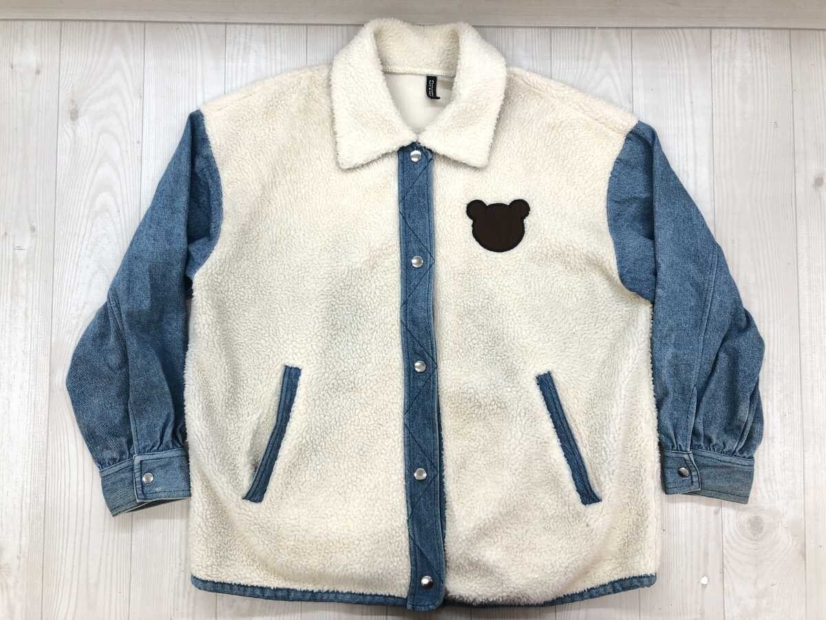 エイチアンドエム H&M アメカジ ストリート TEDDY テディーベア クマ ワッペン デニム切替 ボアフリース ジャケット レディース S です。