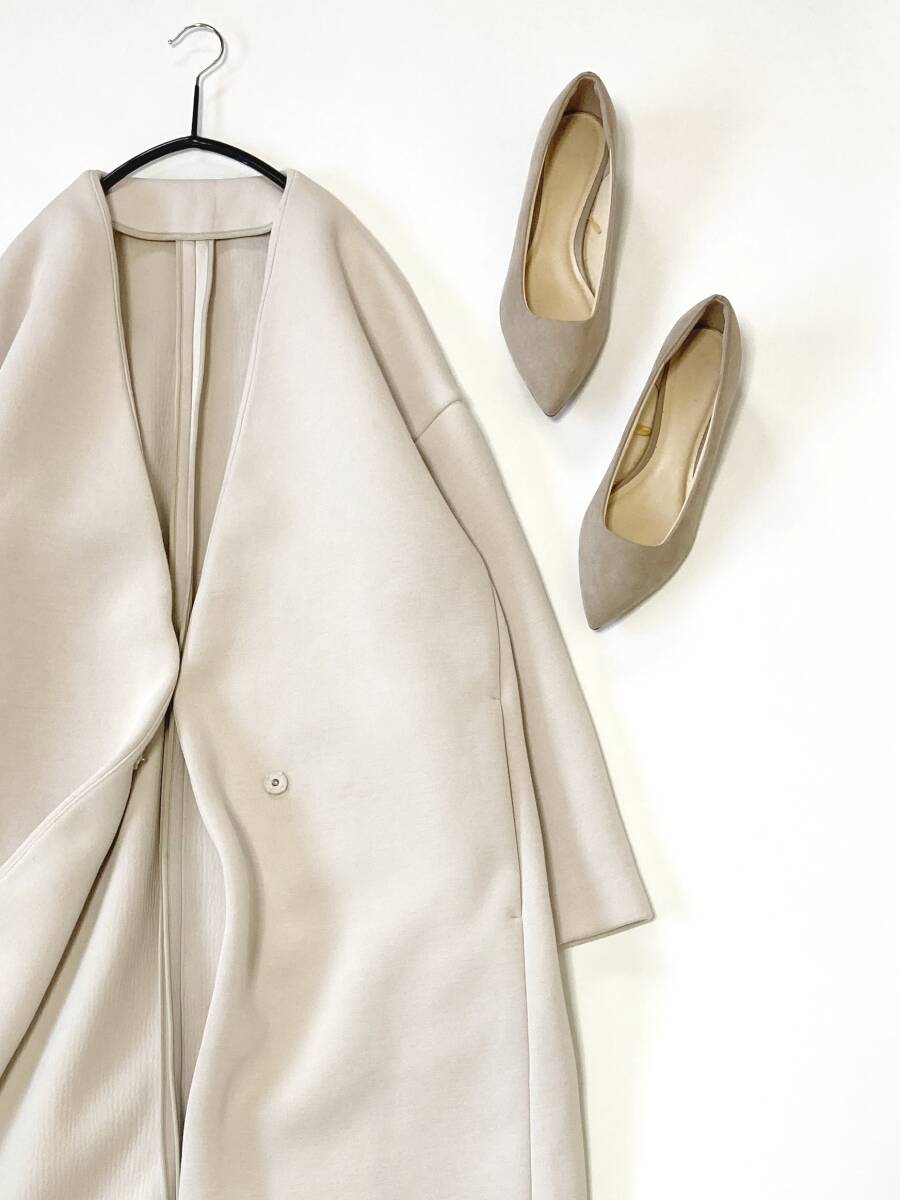 柔らかいカラーとコクーンなシルエットが素敵な一着です◎