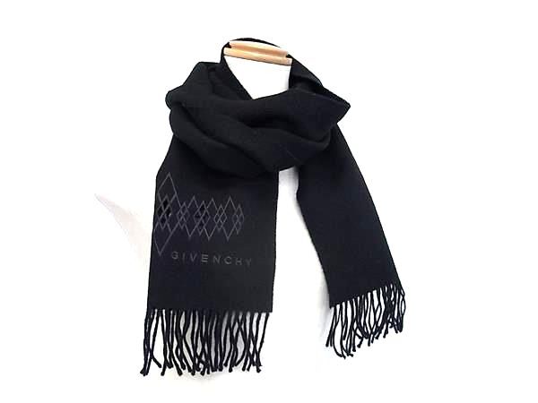 1円 ■極美品■ GIVENCHY ジバンシィ フリンジ マフラー 防寒具 メンズ レディース ブラック系 FN4860