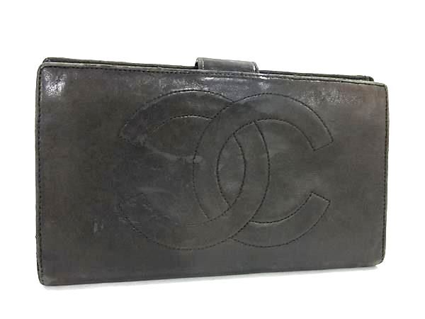 1円 CHANEL シャネル ココマーク ラムスキン 二つ折り 長財布 ウォレット 札入れ 小銭入れ レディース ブラック系 FT3047
