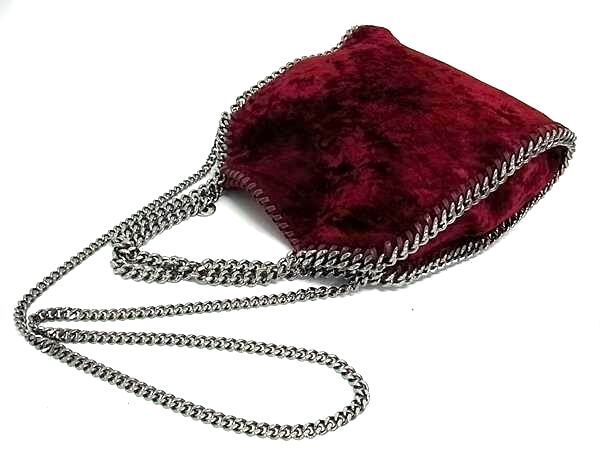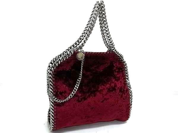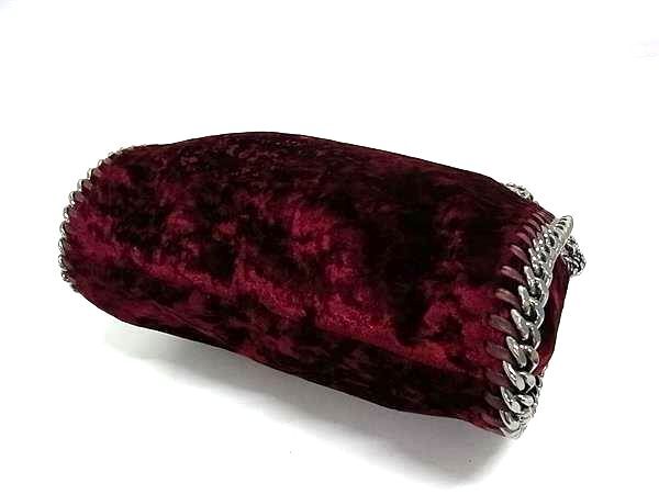 1円 ■美品■ STELLA McCARTNEY ステラ マッカートニー ファラベラ ベロア チェーン 2WAY ショルダー ハンドバッグ ワインレッド系 FU6719