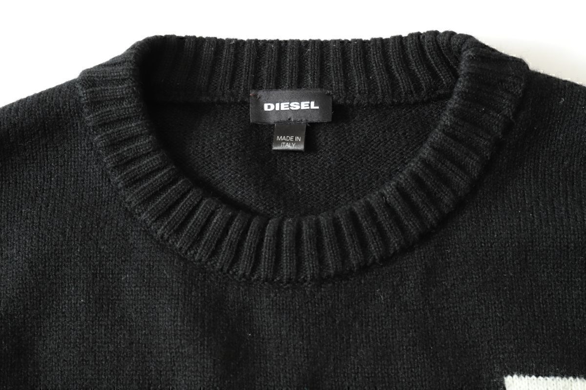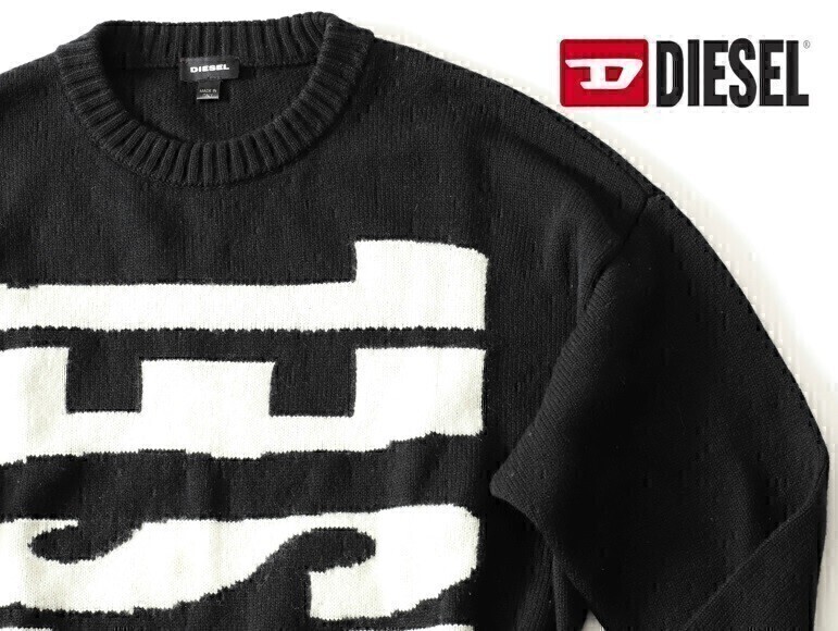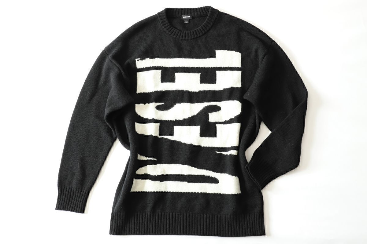 1円 古着 DIESEL ディーゼル ★ジャイアントアイコン ロゴオーバーサイズ長袖セーター M【3716-02563】ブラック黒【本物保証】汚れほつれ