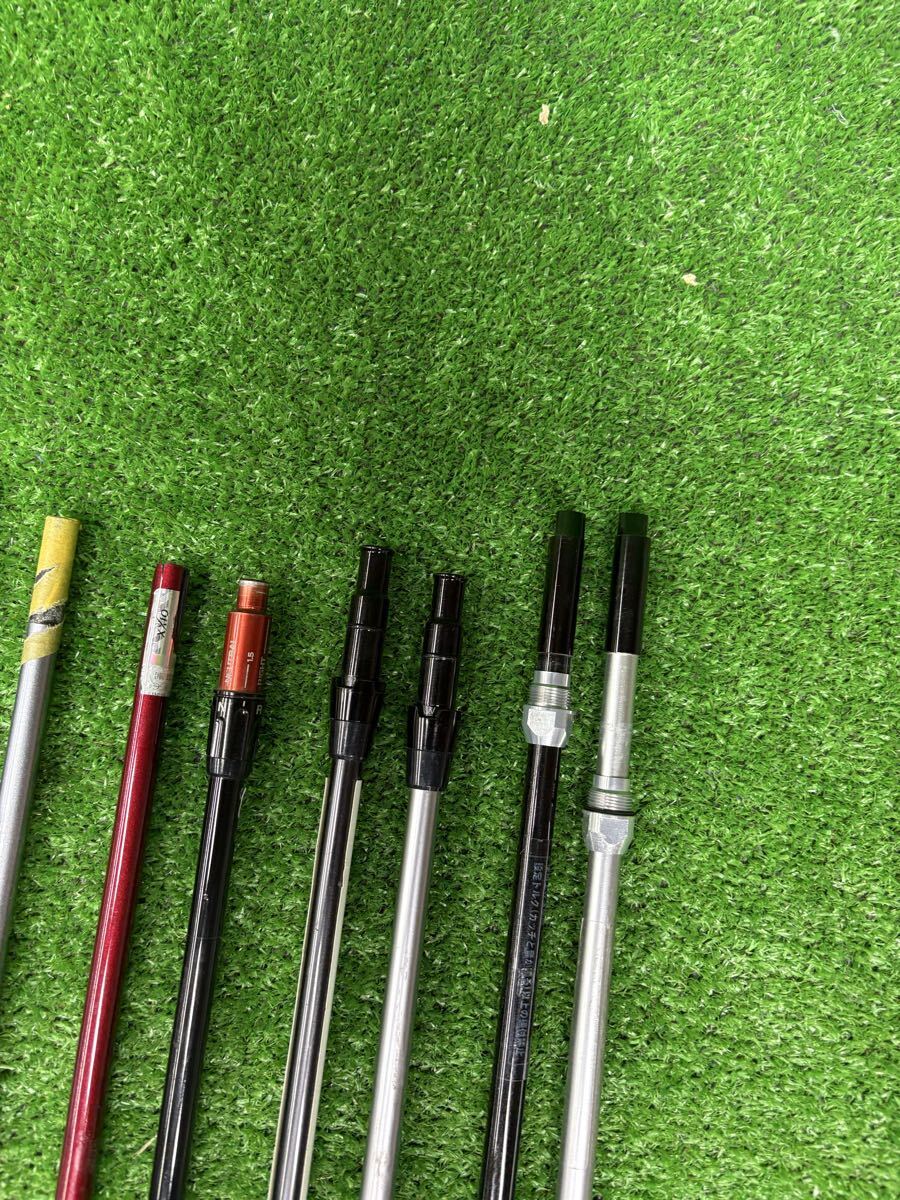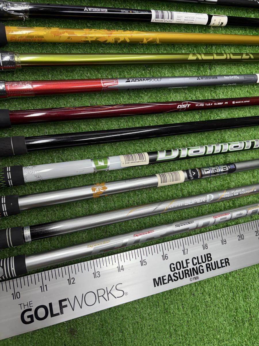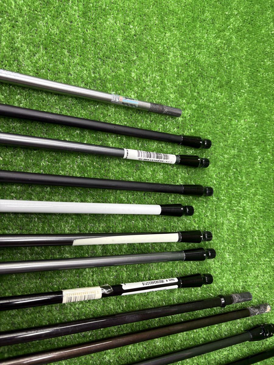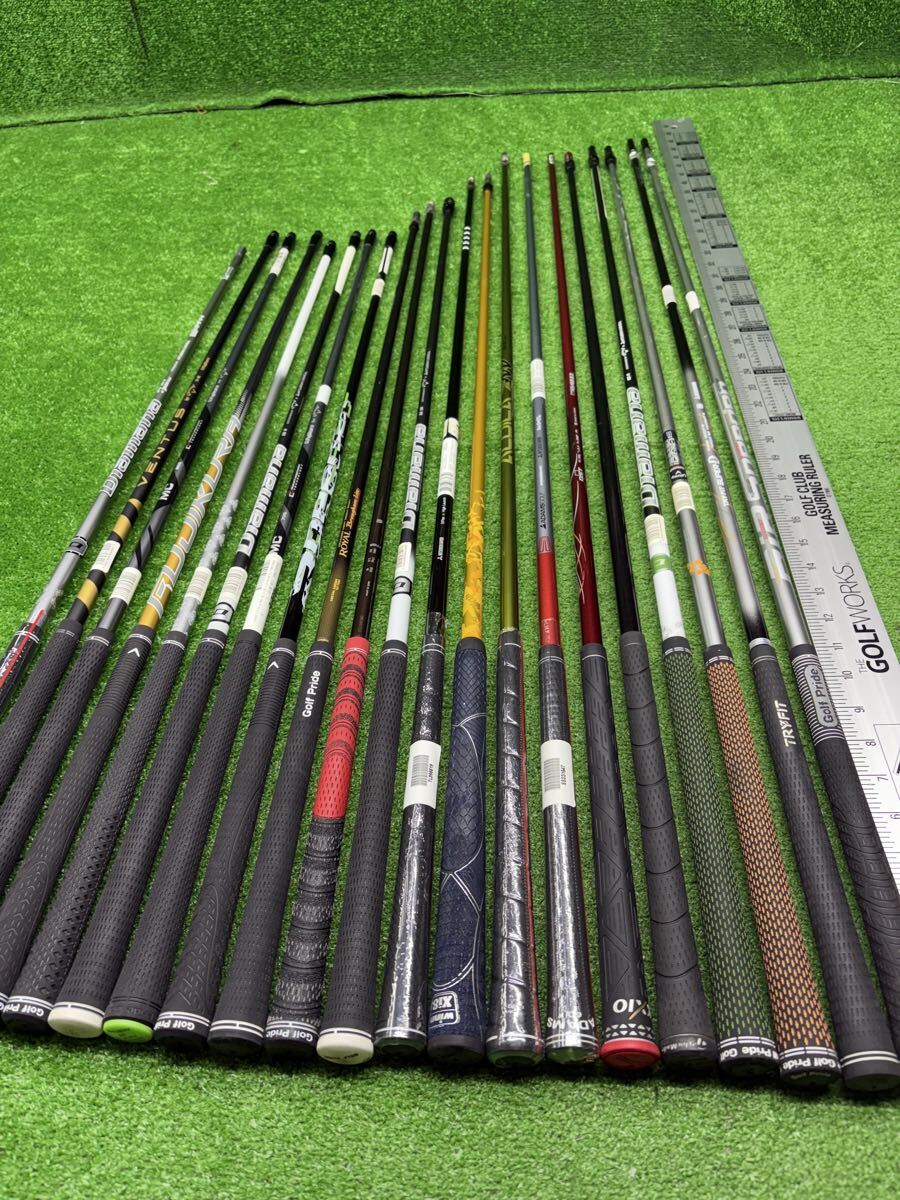 最近は出品が少なくなってしまい申し訳ありません。 メーカーもさまざまで、長さもドライバー用、フェアウェイウッド用なども入ります。インチメジャーを横に付けましたのでご参照下さい。 中には試打用のシャフトも混じります。 尚、フレックスは画像をご参照頂ければ思いますが、どうしても詳しい情報が聞きたい場合にはお問い合わせ下さい。 小さな傷などは画像では判断が出来ない場合があるかもしれませんが割れなどはチェックをしておりますのでよろしくお願いいたします。