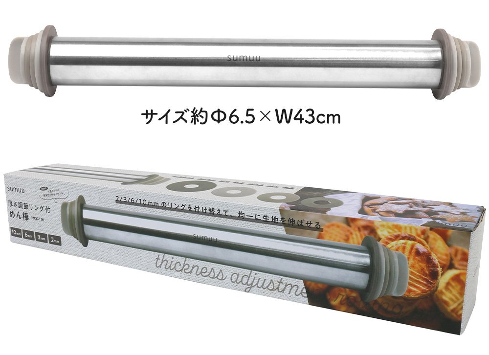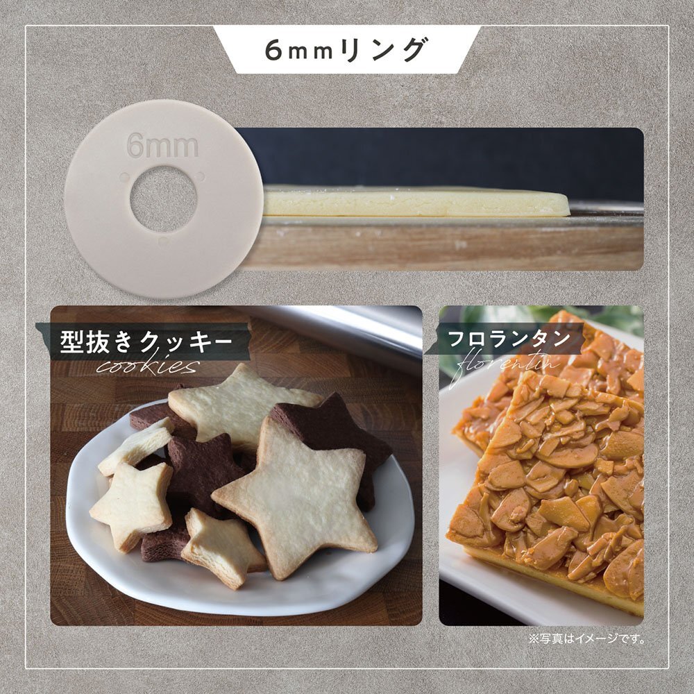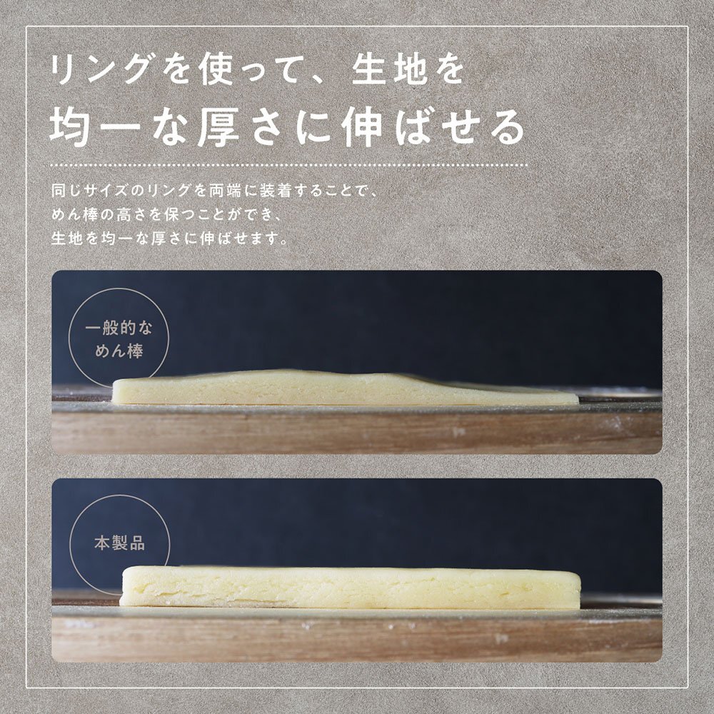 | お料理やお菓子作りに便利! 生地を均一に伸ばせて、厚さも選べる。 ルーラーがいらないめん棒 | |