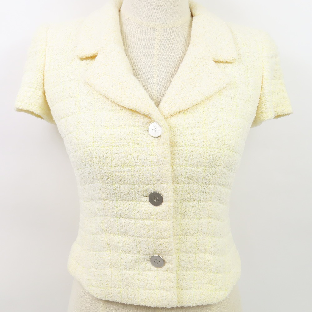 203985 ★1円スタート★ CHANEL シャネル 新品同様美品 ココマーク ツイード ショートスリーブ アウター 38 テーラードジャケット