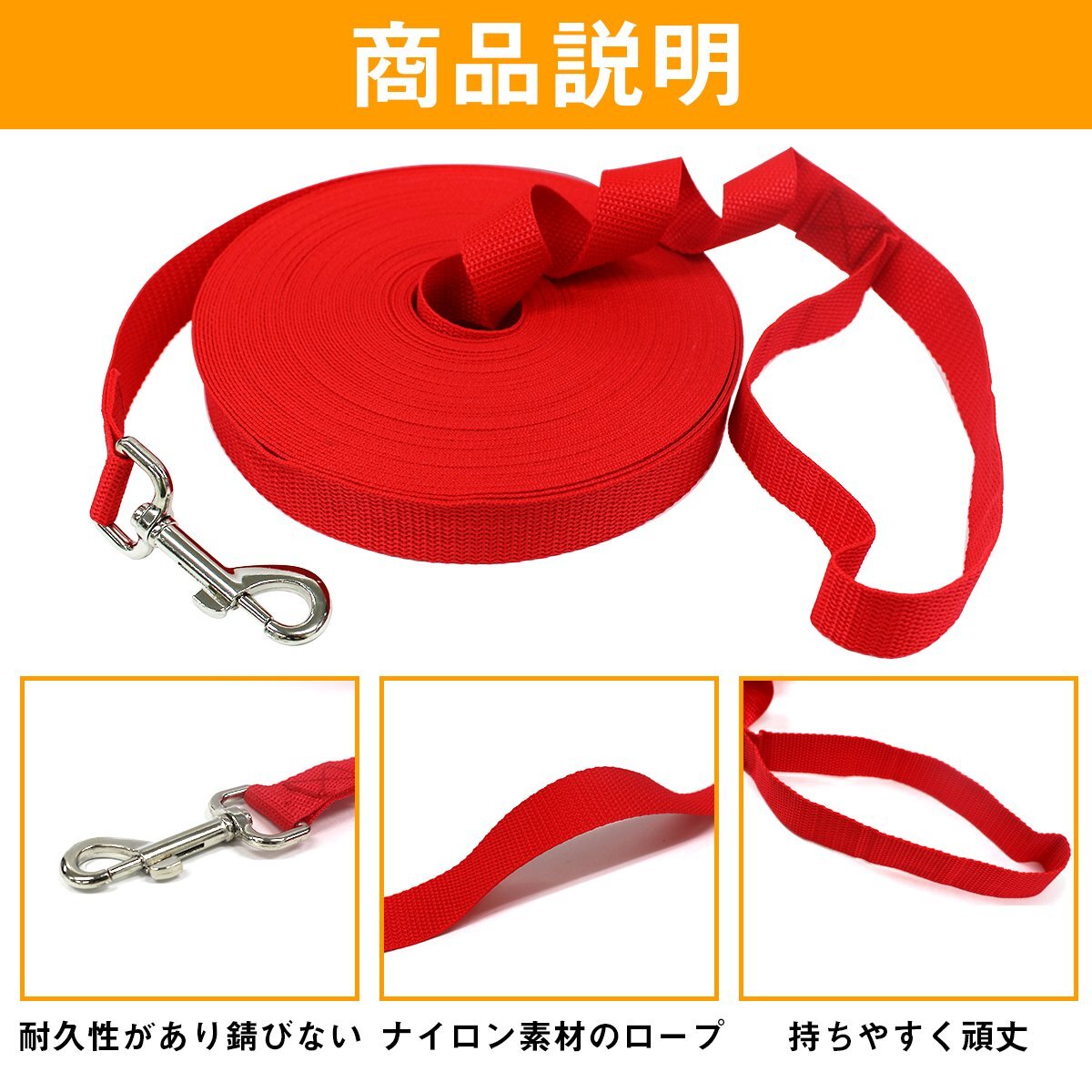 【送料無料】犬用 ロングリード 20m 幅2.5cm 耐荷重 50kg レッド 赤 ハーネス リード 散歩 紐 ナイロンベルト 小型 中型 大型犬 ペット 犬