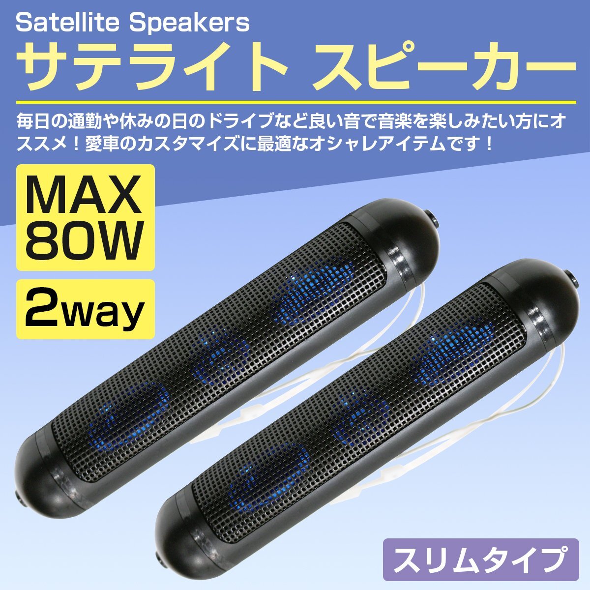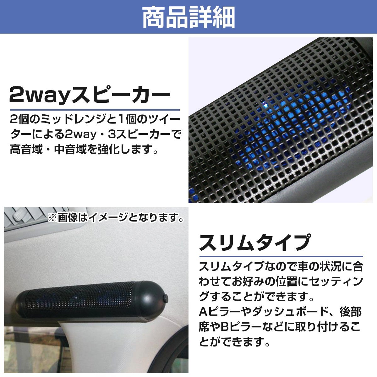 天吊り ピラー 取付け サテライト スピーカー スリムタイプ 2WAY 3スピーカー搭載 ブラック 黒 天井 吊り下げ 車 車載