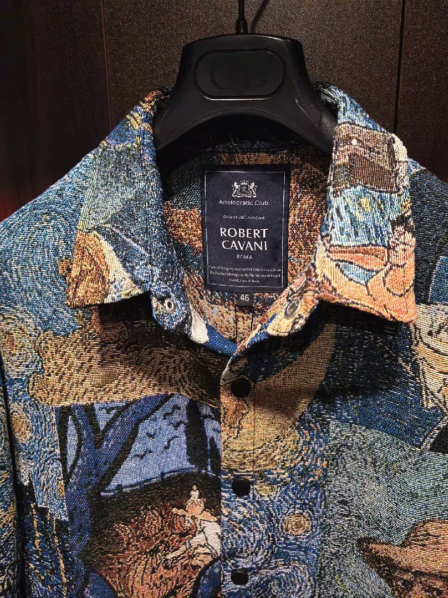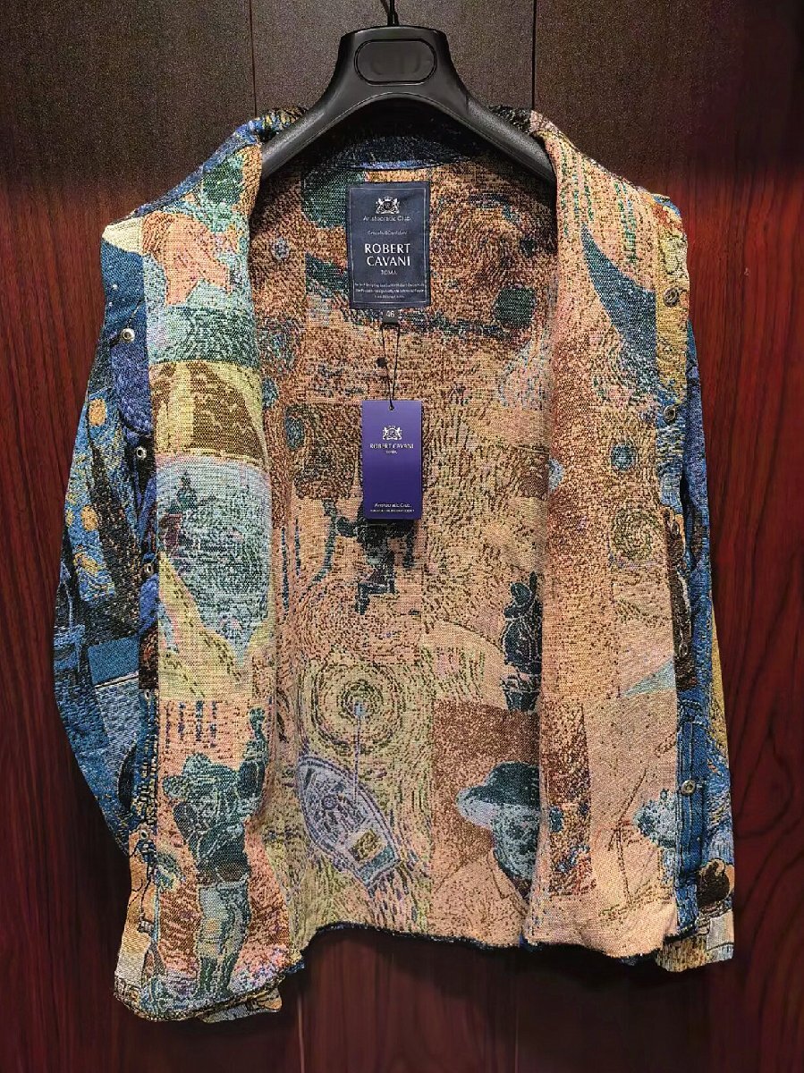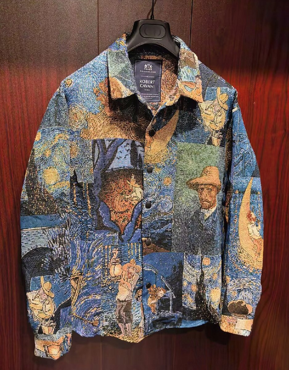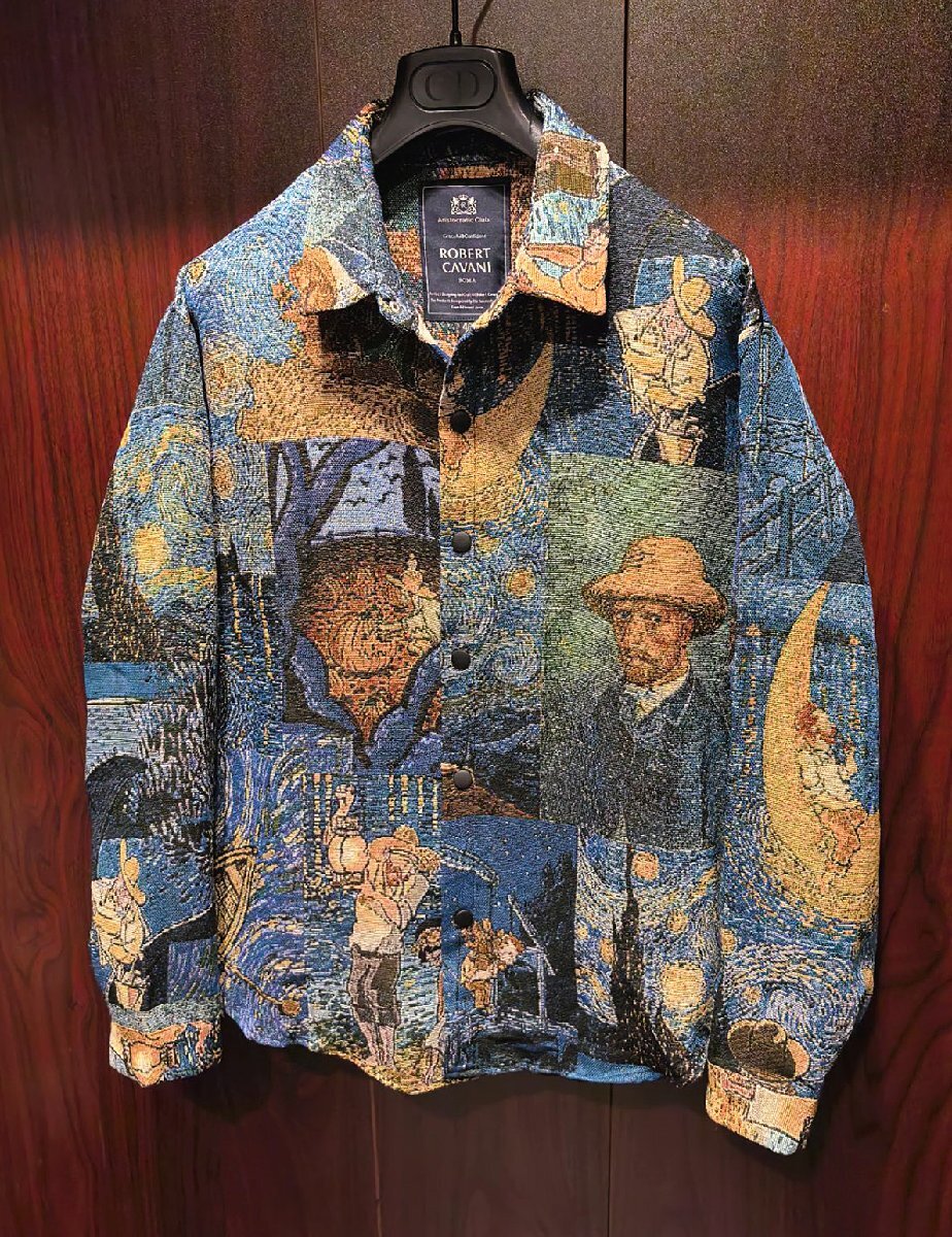 最高級※定価10万◆イタリア・ローマ発*ROBERT CAVANI*高級リネン/麻生地使用・ファン・ゴッホの名作 ・星月夜・シャツ/ジャンパー48/L