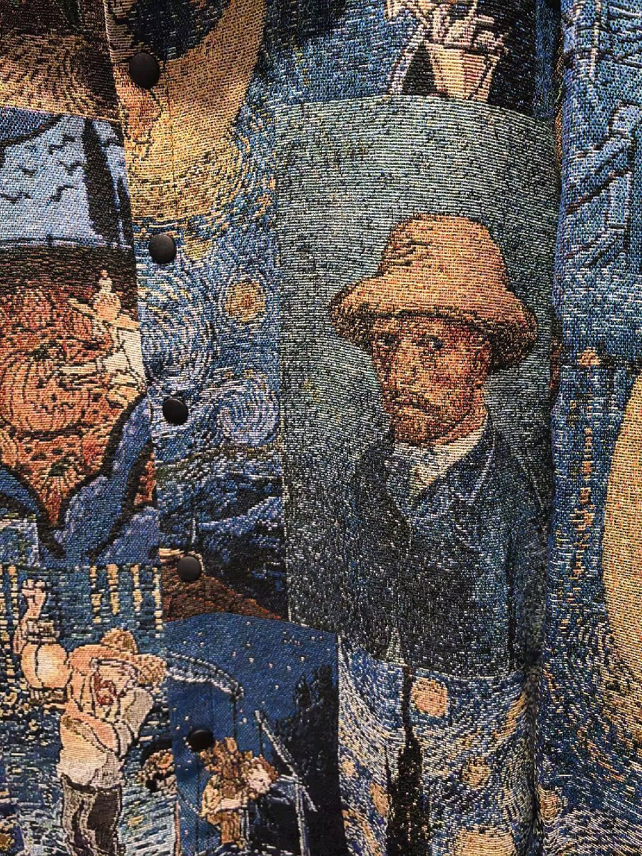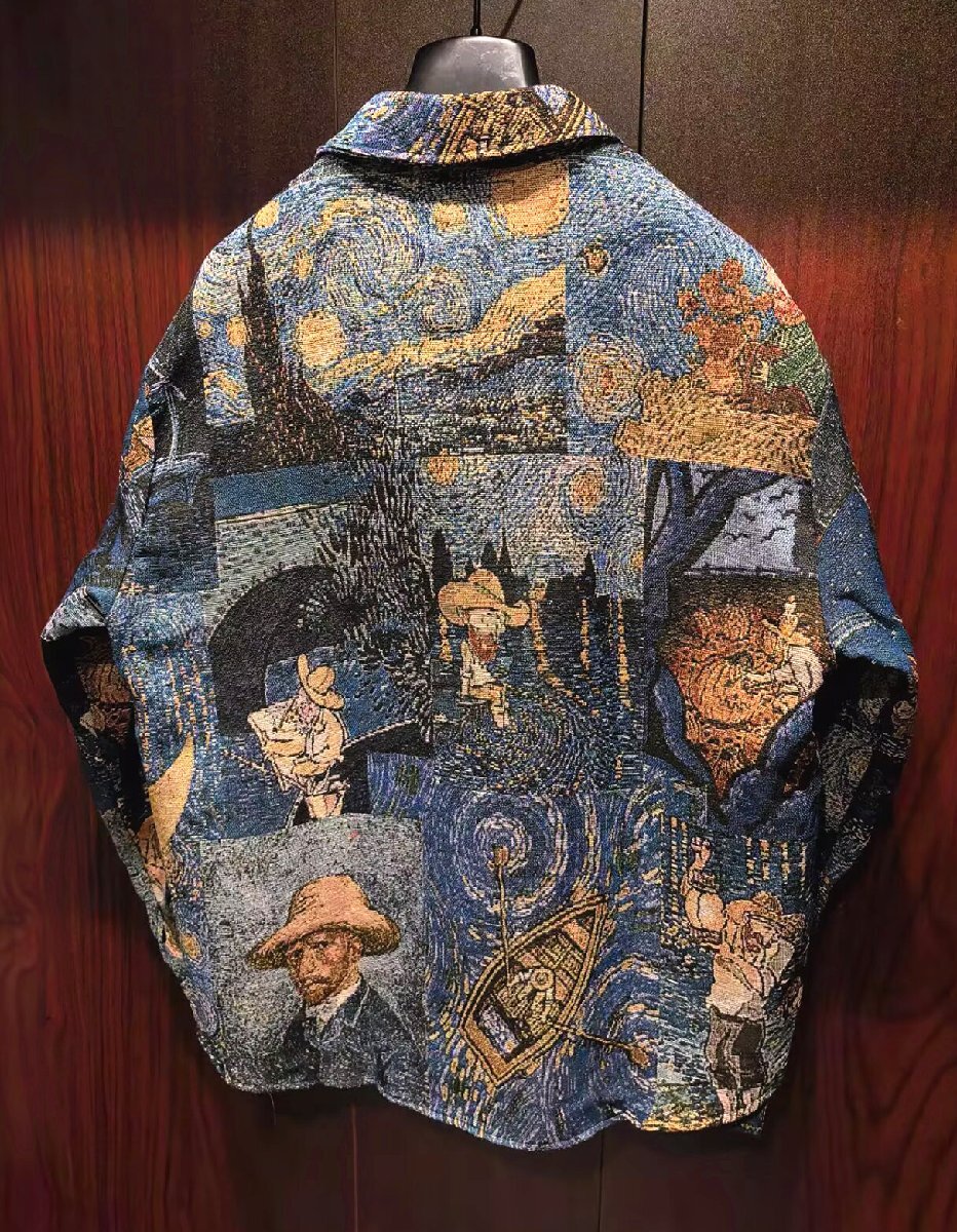 高級リネン/麻生地使用・ファン・ゴッホの名作 ・星月夜シャツ/ジャンパー