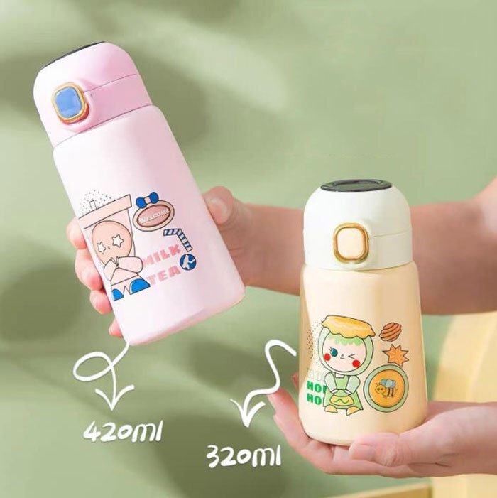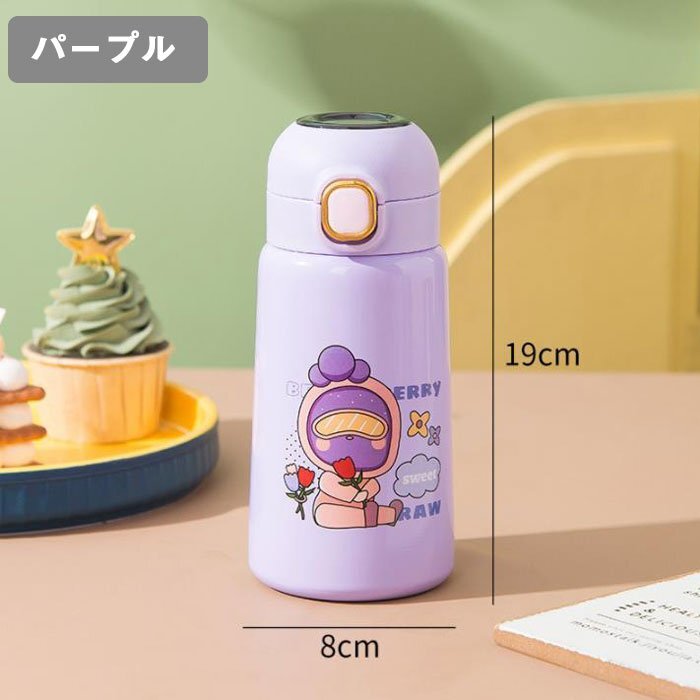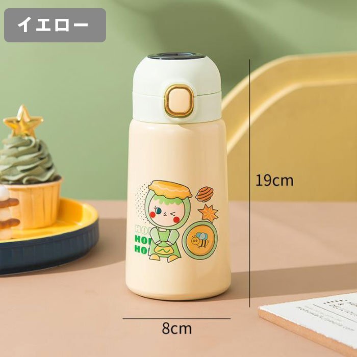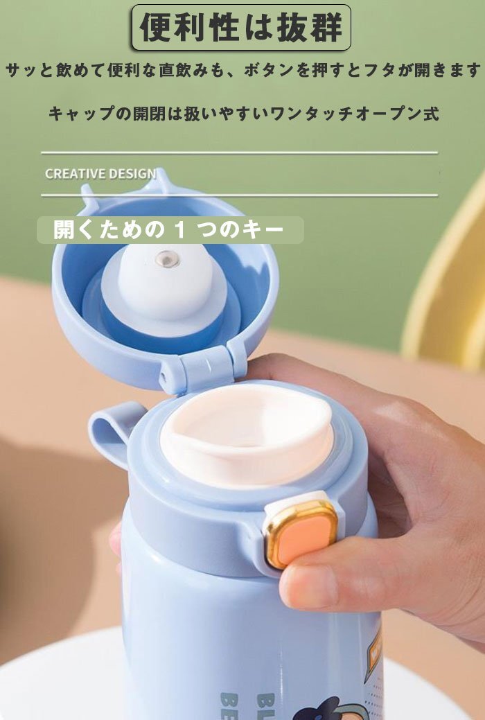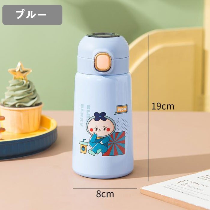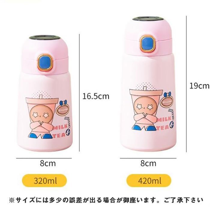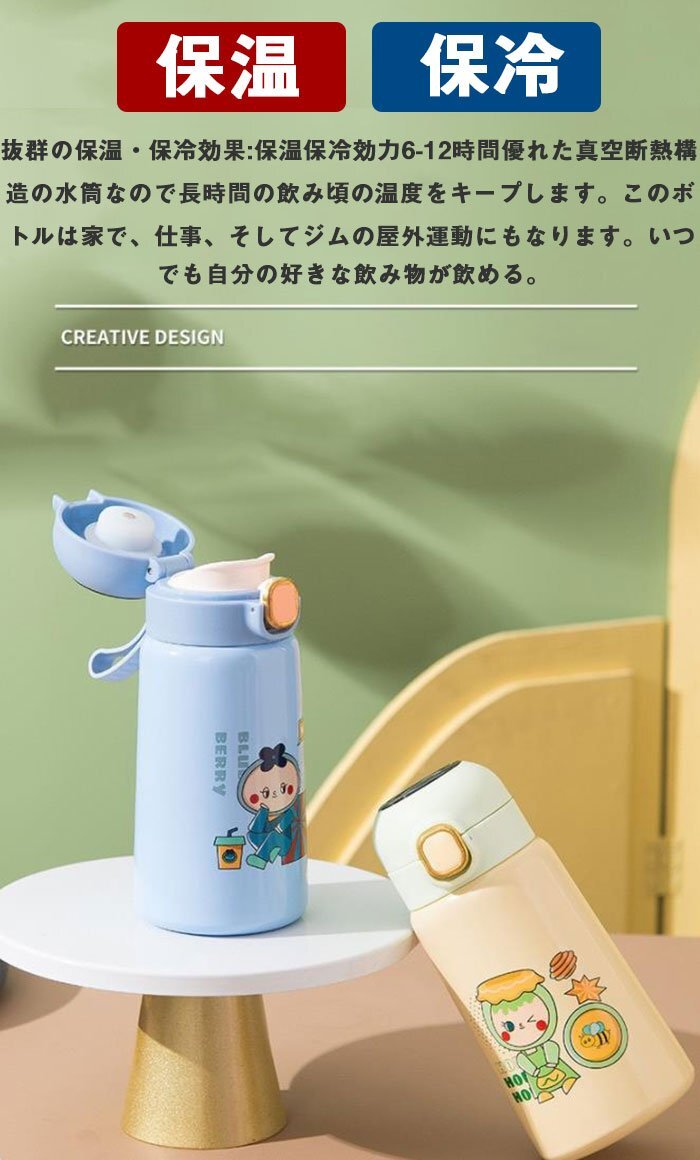水筒 温度表示 キッズ 420ml/320ml 超軽量 可愛い 保温 保冷水筒 おしゃれ 2重構造 保温 保冷ボトル ワンタッチ オープン ☆4色選択/1点