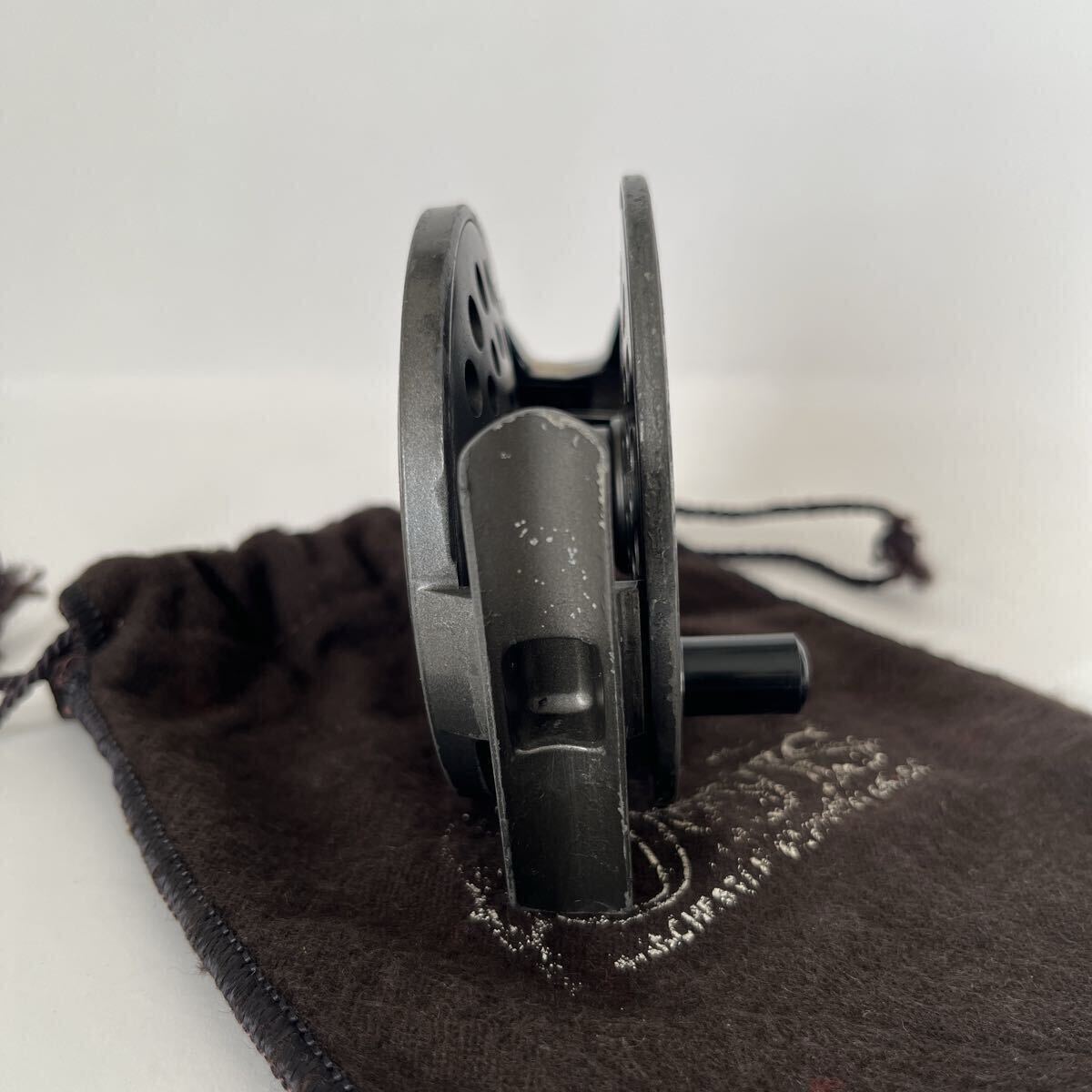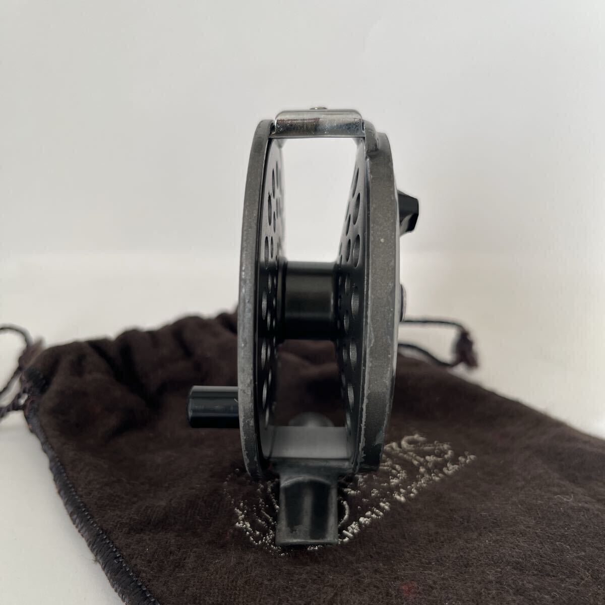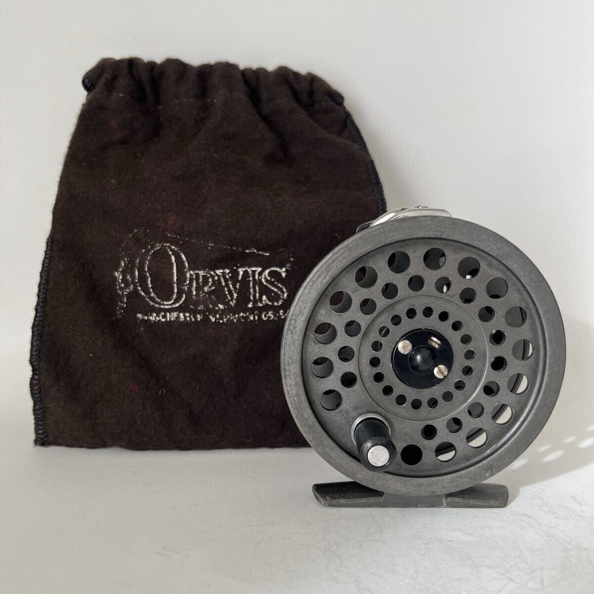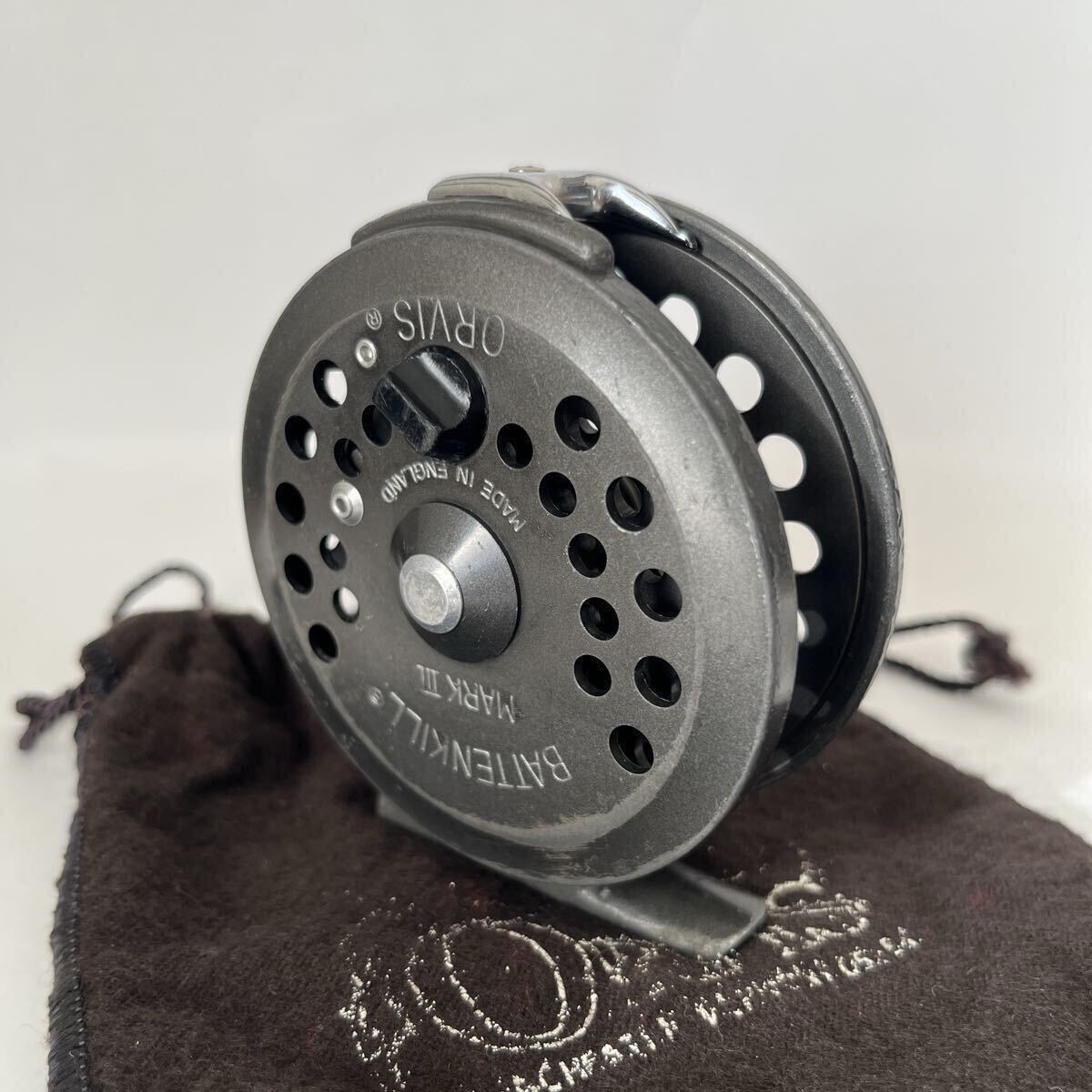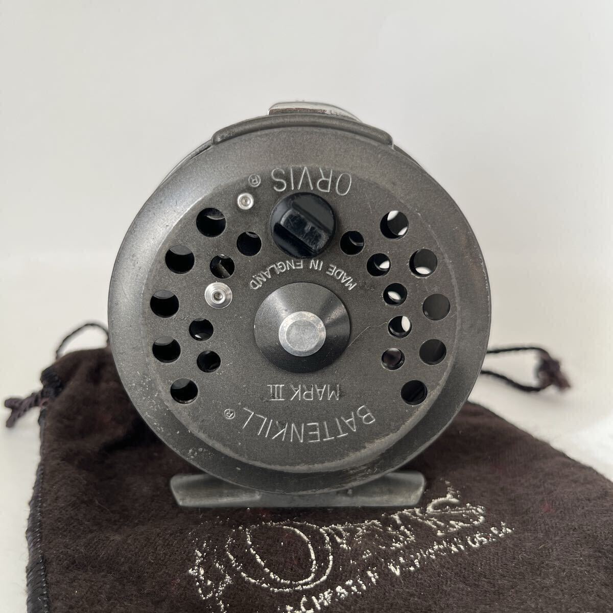 ラチェットドラグ式BATTENKILL3です。1980年代前半のリールと思われます。オービスのフライリールの製造は基本的に他社に生産を委託するかたちですが、このバテンキルも英国BFR社で製造されたものと思われます。キズやスレなどありますが、年代から考えると良いコンディションです。本体直径約8.0cm、スプール幅約1.9cm、重さ約80gの軽量マグネシウム合金製、#4~6ライン対応です。スプールはしっかりしたクリックでぐらつき無くスムーズに回転します。オービスのロゴ入り布製ポーチ付です。ノークレーム、ノーキャンセルでお願い致します。