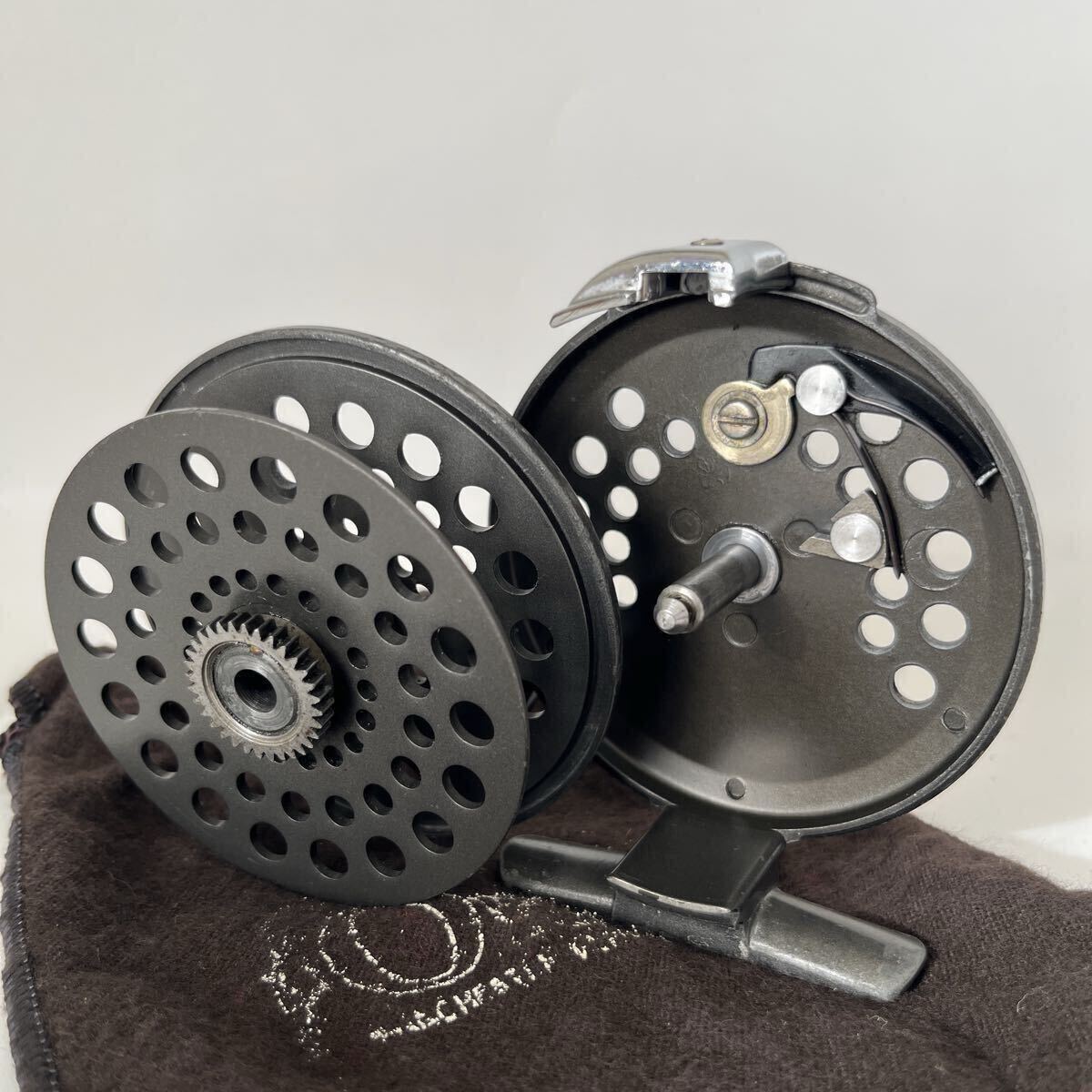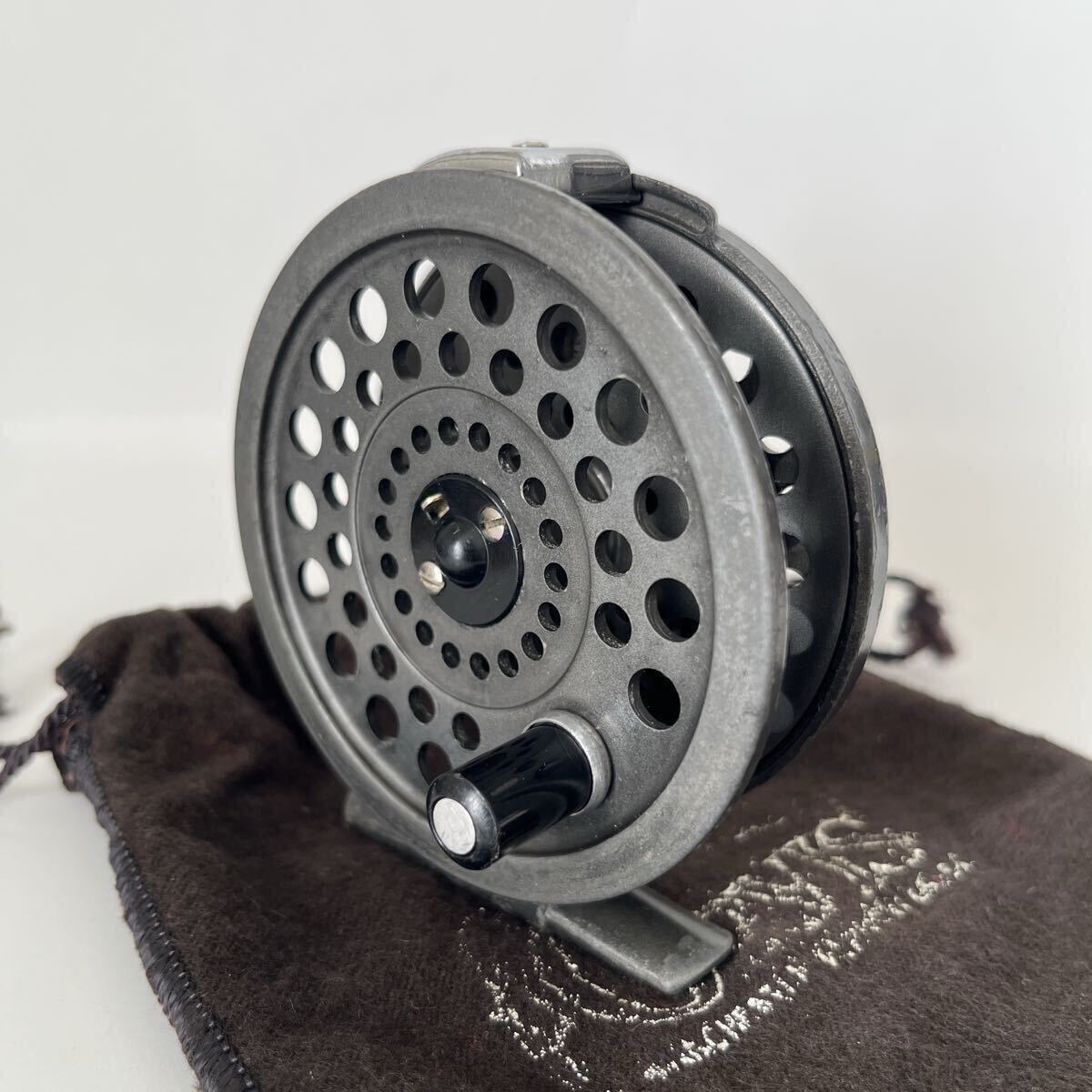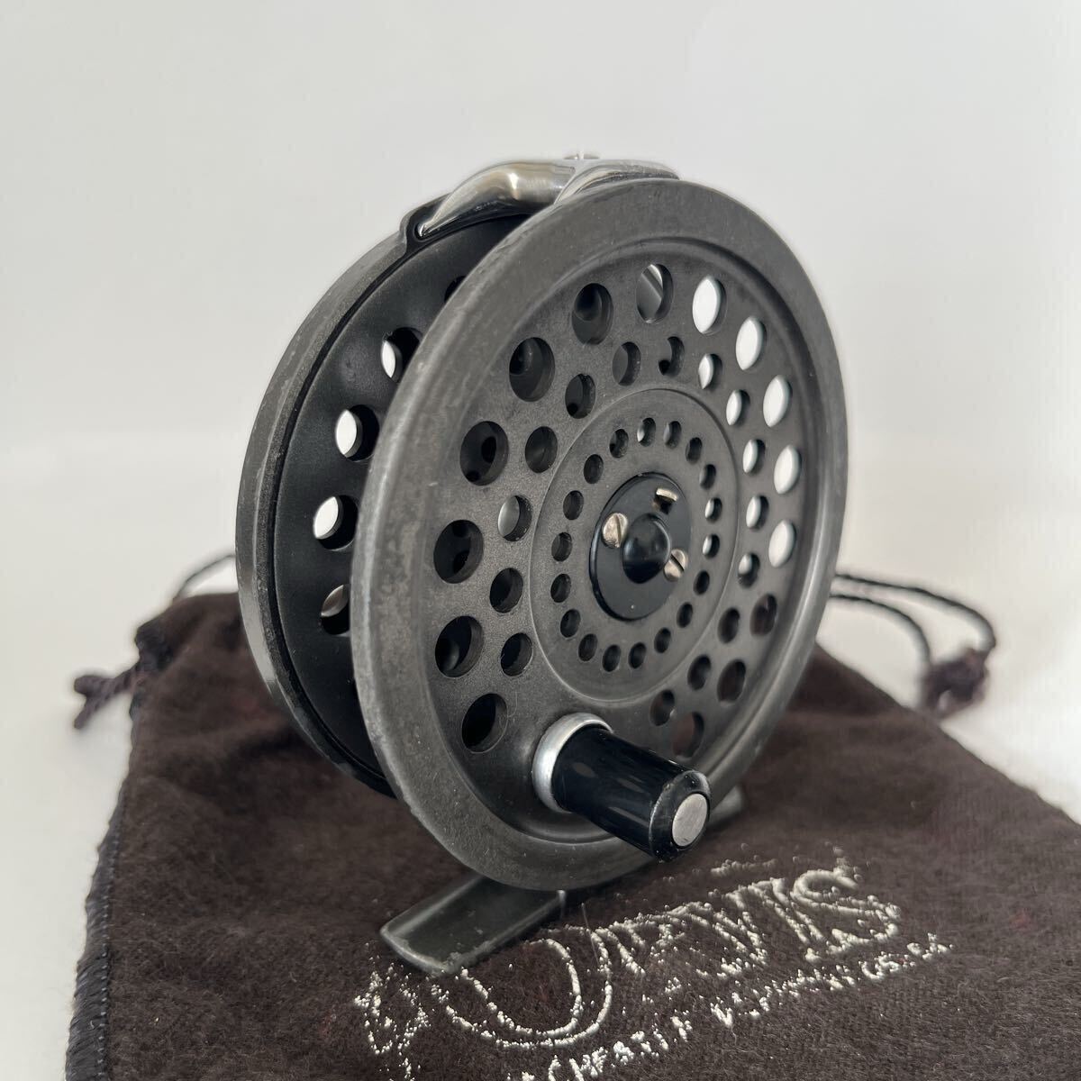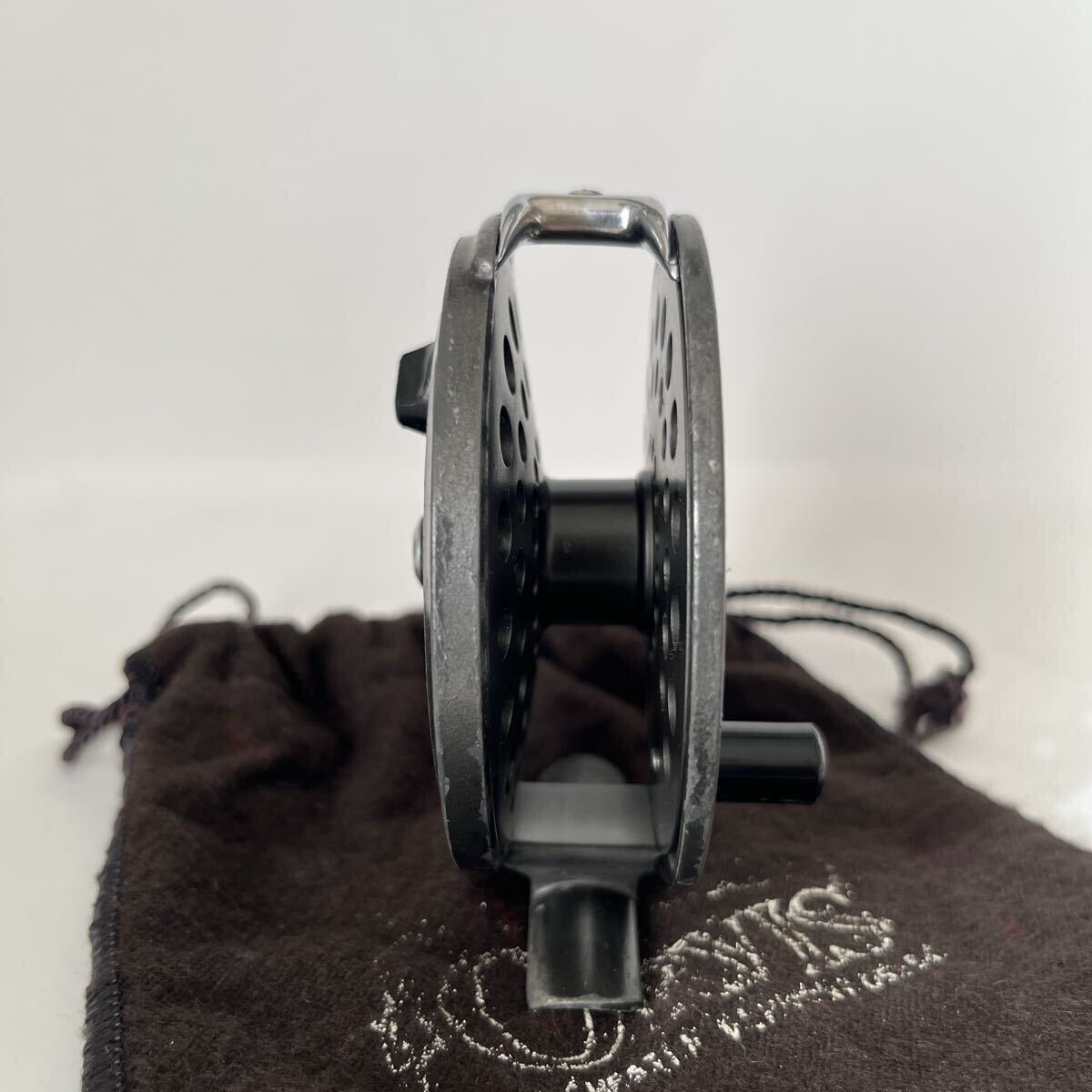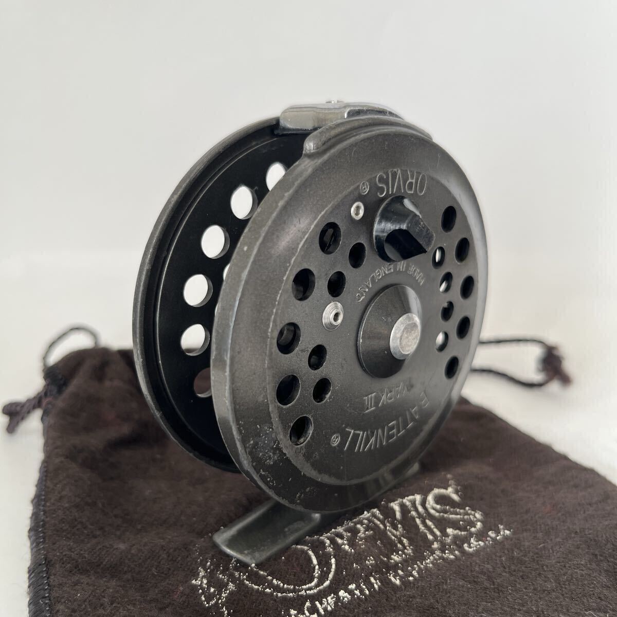 ラチェットドラグ式BATTENKILL3です。1980年代前半のリールと思われます。オービスのフライリールの製造は基本的に他社に生産を委託するかたちですが、このバテンキルも英国BFR社で製造されたものと思われます。キズやスレなどありますが、年代から考えると良いコンディションです。本体直径約8.0cm、スプール幅約1.9cm、重さ約80gの軽量マグネシウム合金製、#4~6ライン対応です。スプールはしっかりしたクリックでぐらつき無くスムーズに回転します。オービスのロゴ入り布製ポーチ付です。ノークレーム、ノーキャンセルでお願い致します。
