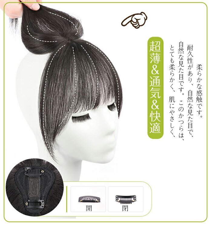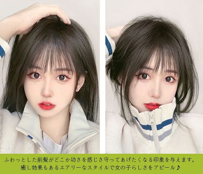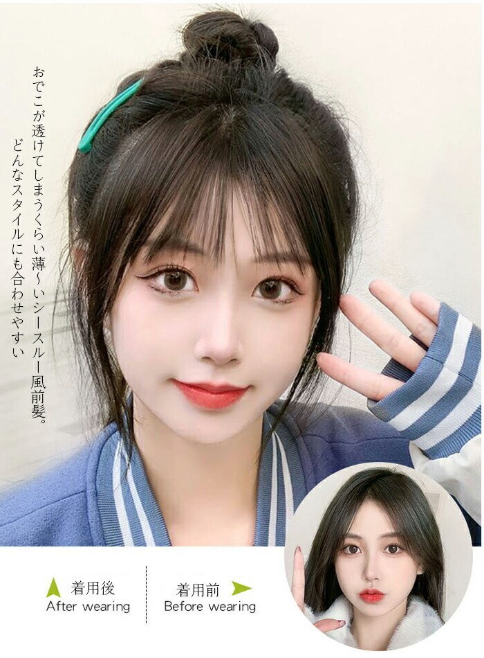 前髪ウィッグ 普段使い 部分ウィッグ 人毛 ボリュームアップ 自然 カバー ポイントウィッグ かつら 可愛い 取り付け簡単☆2色選択/1点