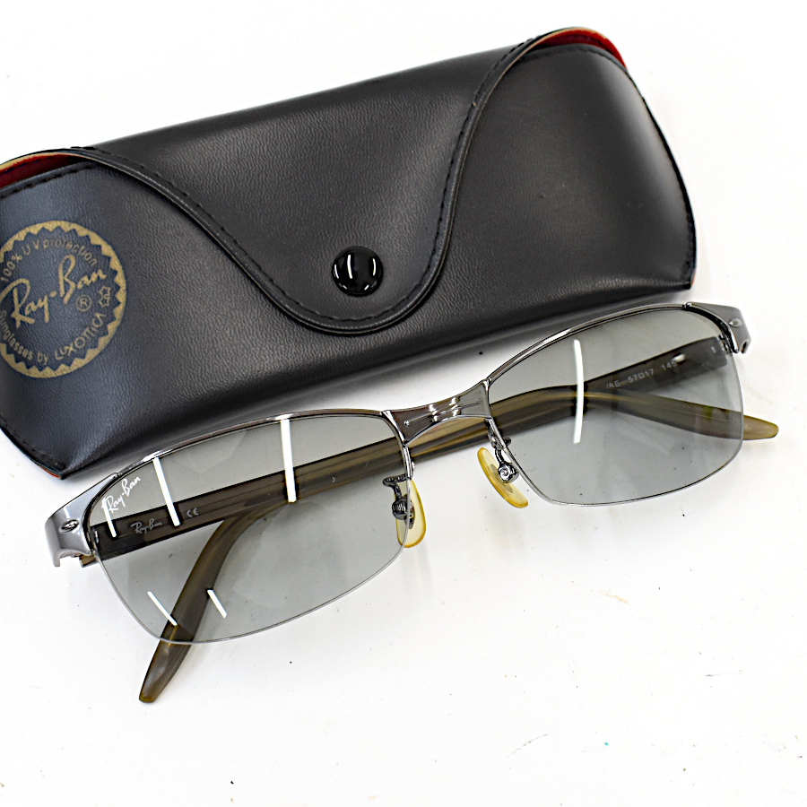 1円◆美品/RayBan/レイバン/サングラス/アイウェア/スクエア/ハーフリム/RB3318/プラスチック/メタル/シルバー◆E.Bie.aT-22
