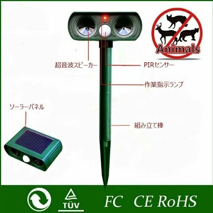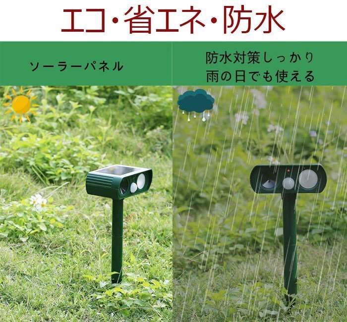 猫よけ 動物撃退器 害獣撃退 超音波 ソーラー充電 猫撃退 猫退治 猫よけグッズ 糞被害 鳥害対策 猫除け 鳥除け 犬除け ネズミよけ 防水防塵