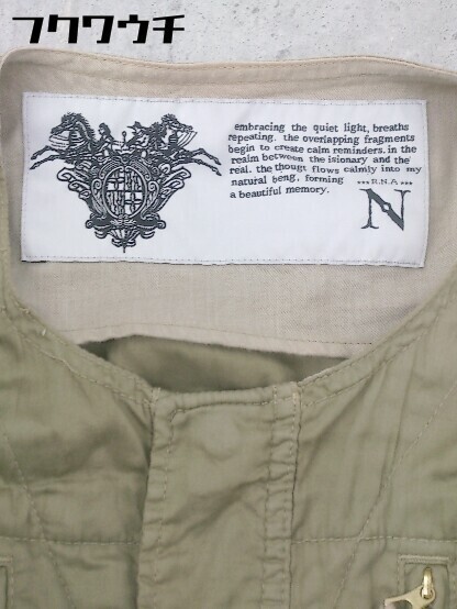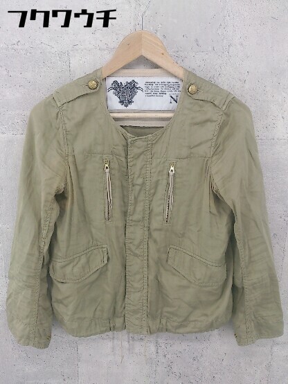 ◇ RNA アールエヌエー 薄手 ノーカラー ジャケット ブルゾン サイズM カーキ系 レディース