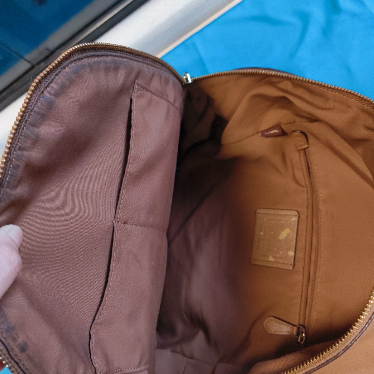 写真の通り痛みが激しく、中の革製タグは加水分解で脆くなっています。