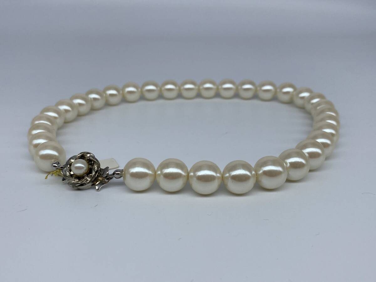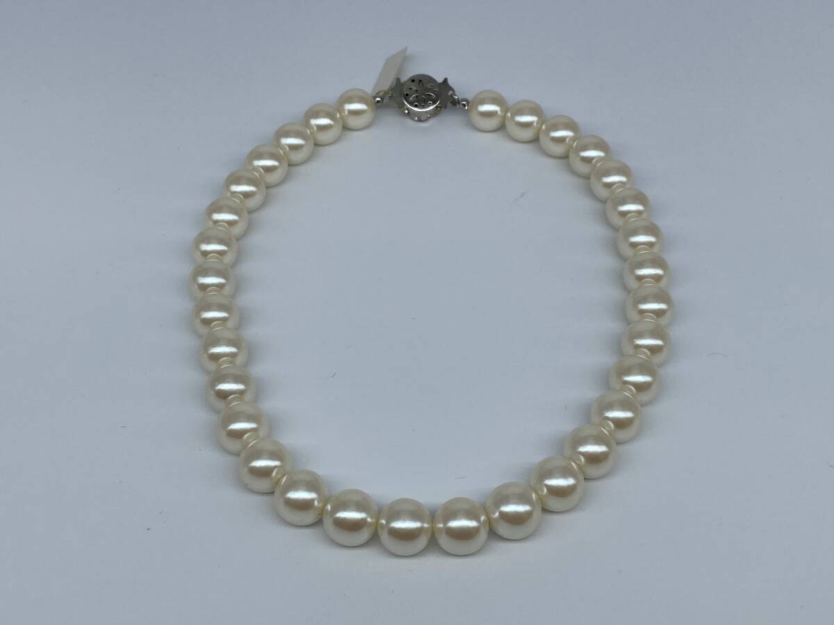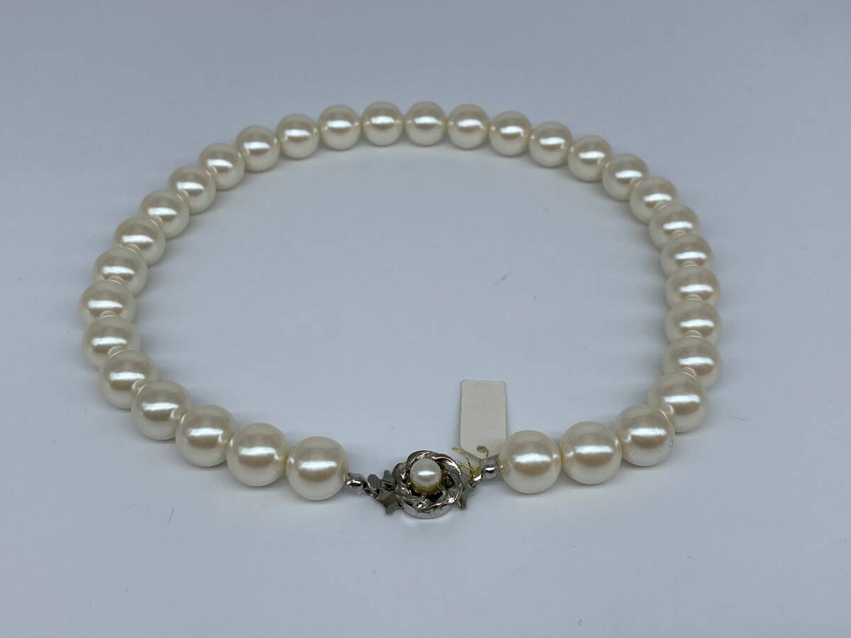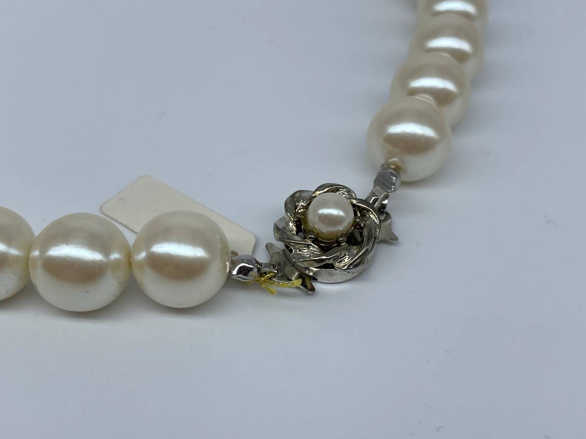 N50 / フェイクパール ネックレス 一連 花モチーフ留め具 エレガント アクセサリー