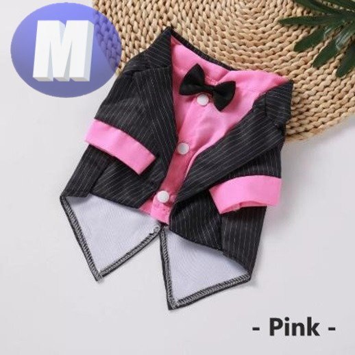 ドッグウェア タキシード ピンク Mサイズ 蝶ネクタイ ストライプ 犬服 小型犬 中型犬 柔らか 洋服 可愛い パーティー フォーマル