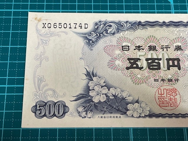 500円札 五百円紙幣 岩倉具視 記番号XQ650174Dです。