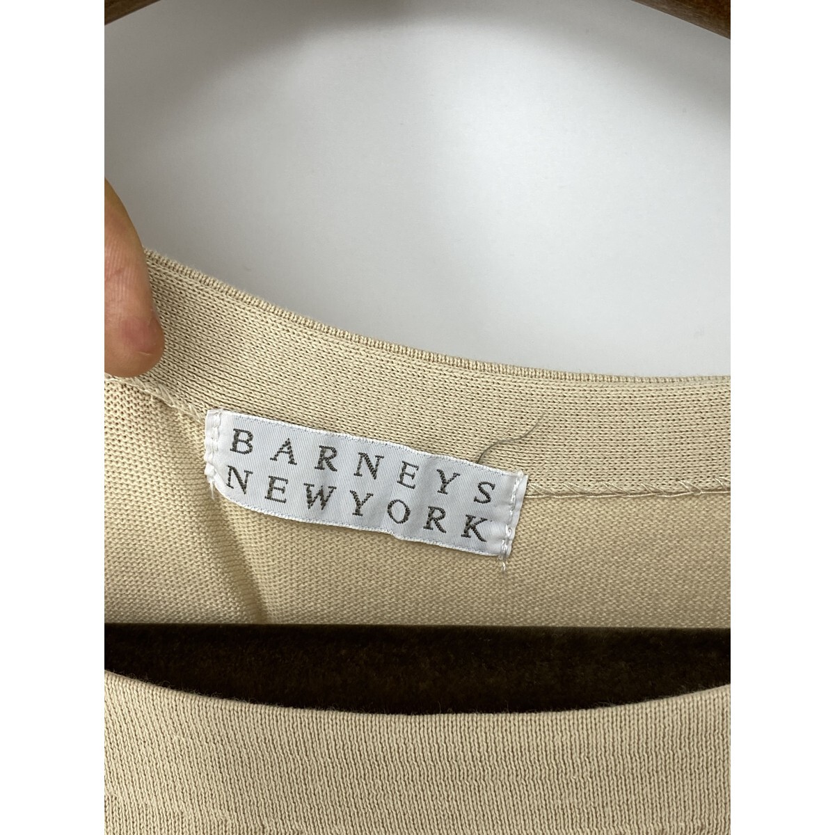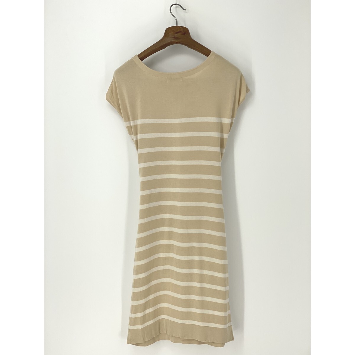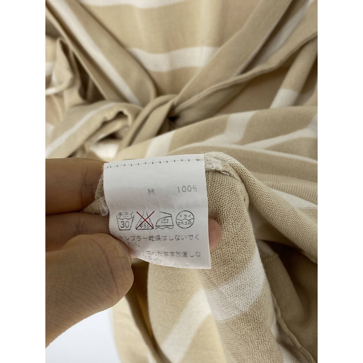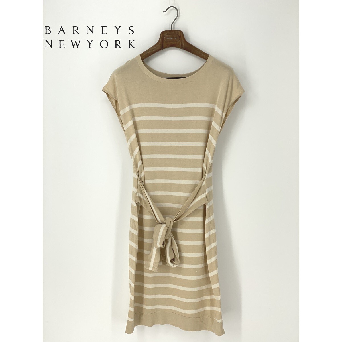 A7966/春夏 BARNEYS NEWYORK バーニーズニューヨーク コットン ボーダー ノースリーブ リボンタイ 膝丈 ワンピースL程 ベージュ/レディース