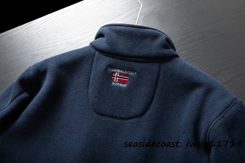 フリースジャケット メンズ ブルゾン ボアジャケット アウター 秋冬 厚手 防寒 暖かい 裏起毛 ふわふわ シェニール デザイン ネイビー L