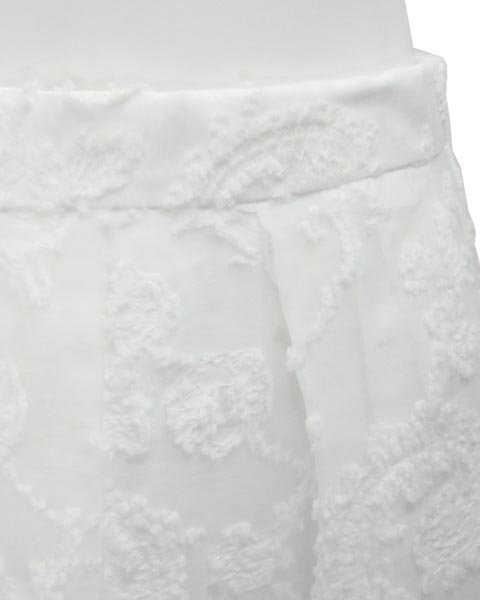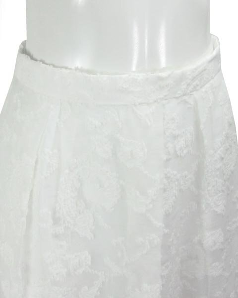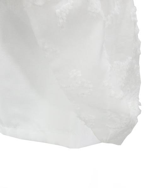 | シアー生地にモコモコ刺繍のフェミニンなスカート。Aラインで女性らしい雰囲気。ビジネスシーンからオフの日までお使い頂けます。裏地がありますので、透け感は少ないです。 |