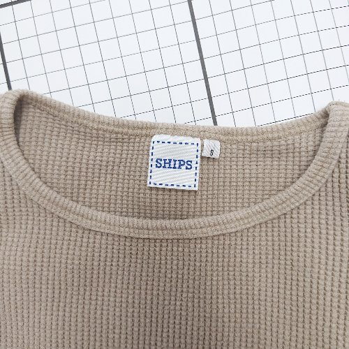 ◇ ⊇ SHIPS シップス ワッフルサーマル 長袖 ワッフルサーマルカットソー サイズS ベージュ系 レディース E