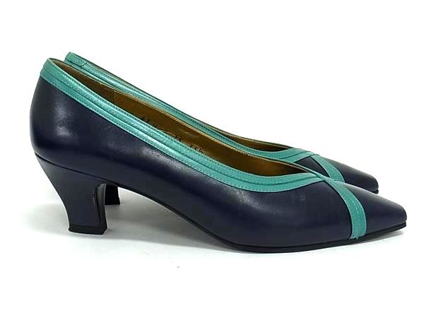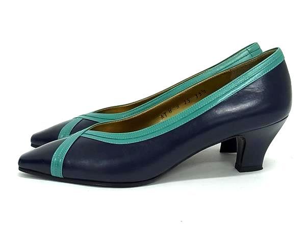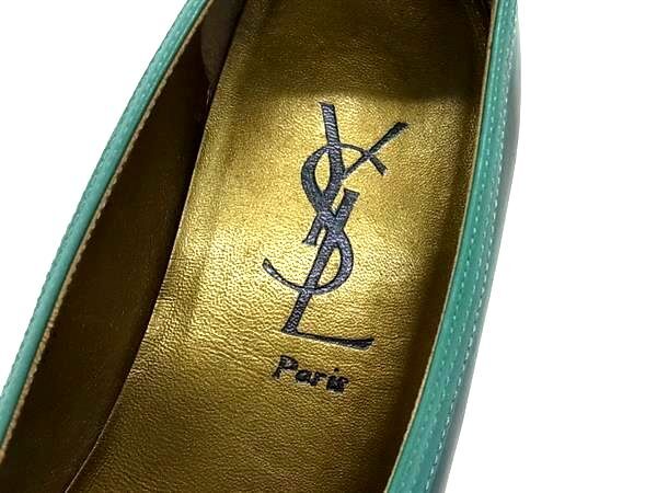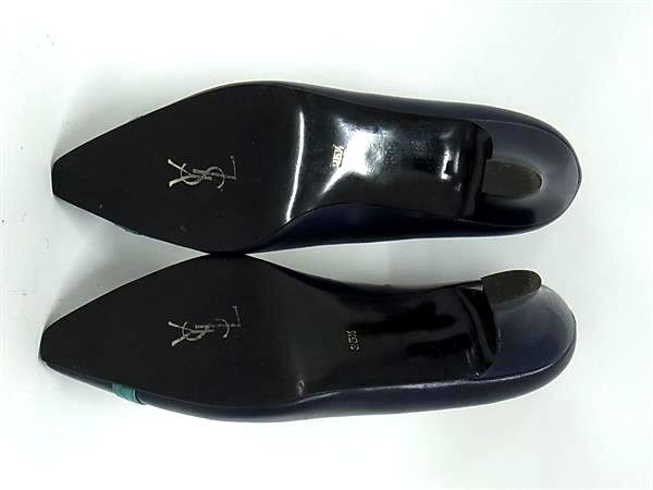 ■美品■ YVESSAINTLAURENT イヴサンローラン レザー パンプス サイズ 35 1/2(約22.5cm) シューズ 靴 ネイビー系×グリーン系 DI8851