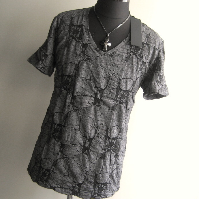 ■イぼこぼことした凹凸のあるウォール(壁)柄ジャカードジャージーを使用した半袖Vネックカットソー