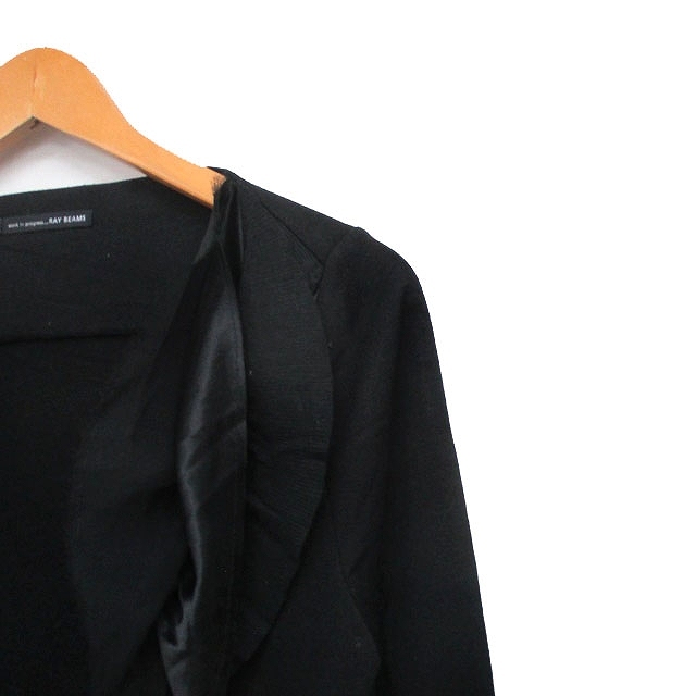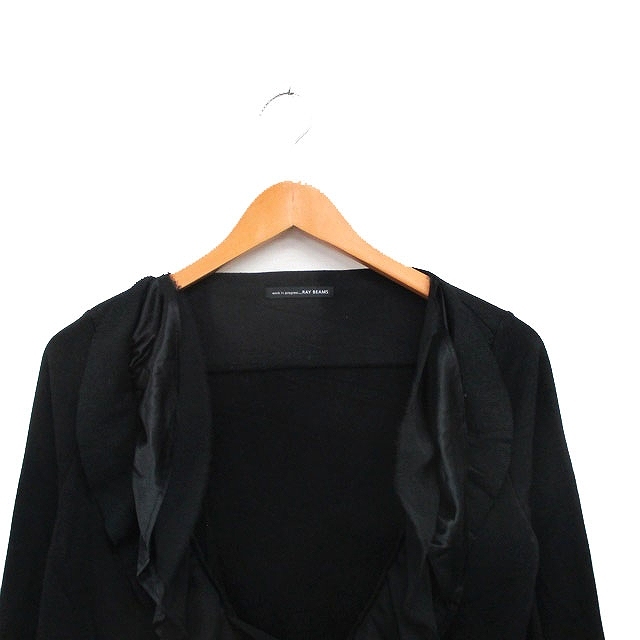 レイビームス Ray Beams カーディガン 長袖 フリル リボン コットン シンプル F ブラック 黒 /KT12 レディース