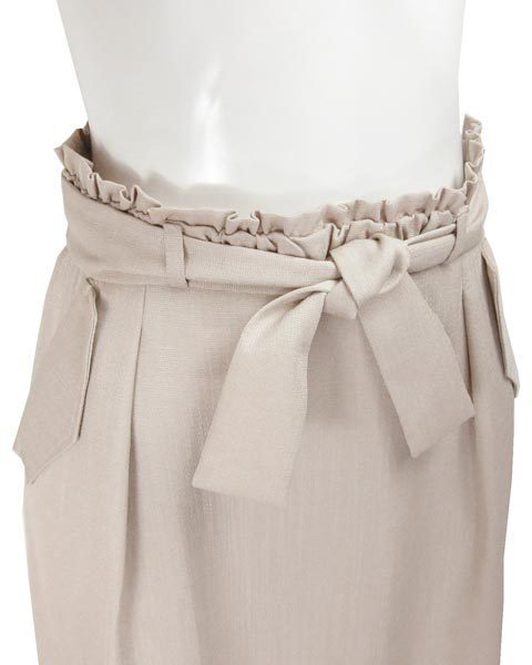 | やや光沢のあるシンプルで上品なスカート。同素材のリボンベルトのオンオフで雰囲気がかわります。きちんと感があり、ビジネスシーンからオフの日まで活躍してくれます。シーズン問わずお使い頂けます。 |