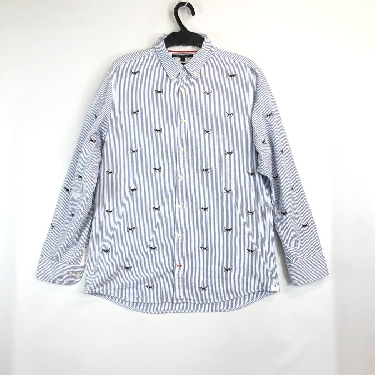 TOMMY HILFIGER トミーヒルフィガー 長袖ボタンダウンシャツ NEW YORK FIT XLサイズ 犬刺繍