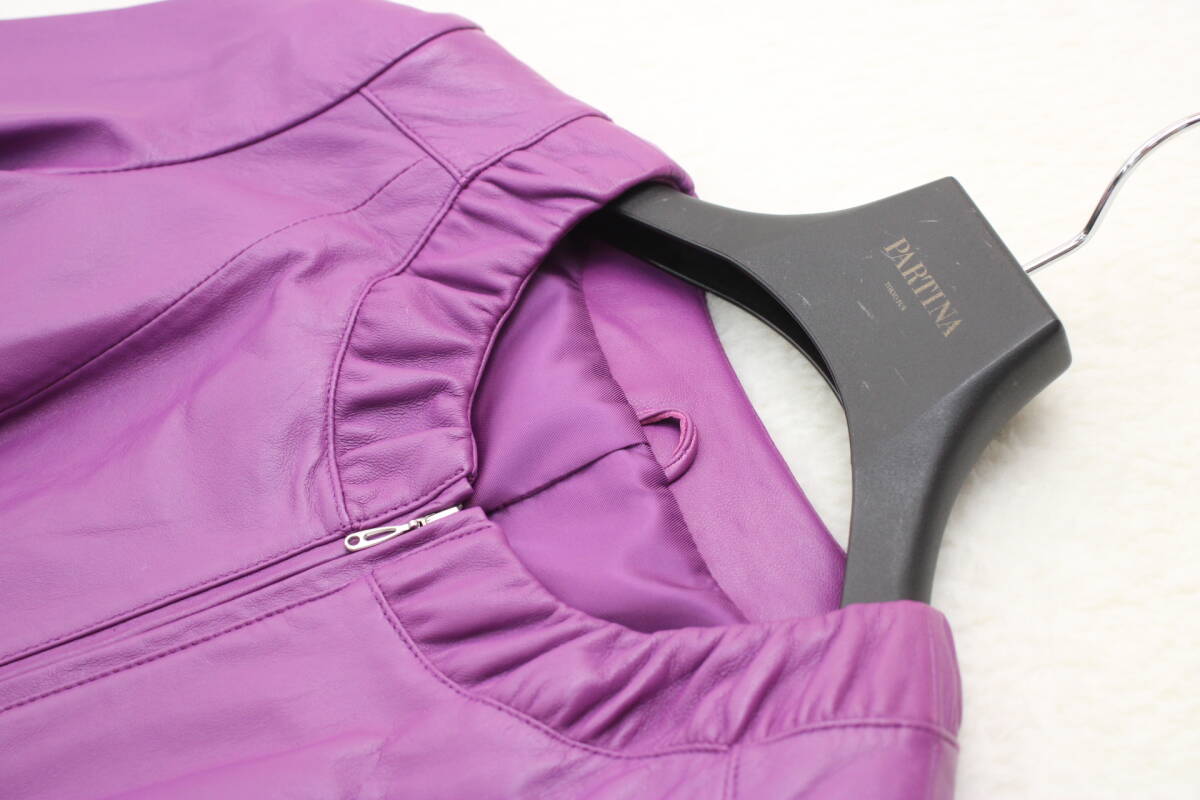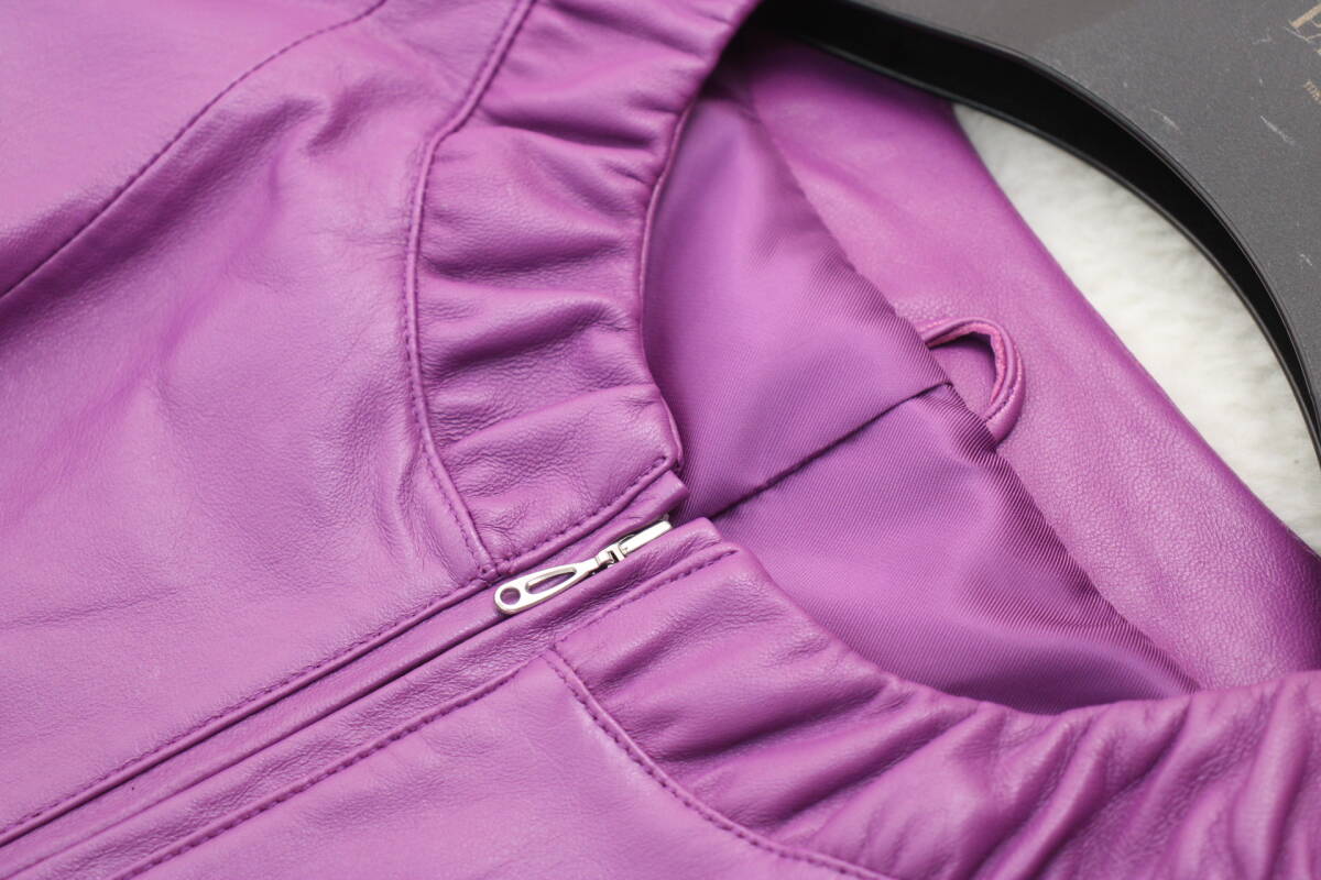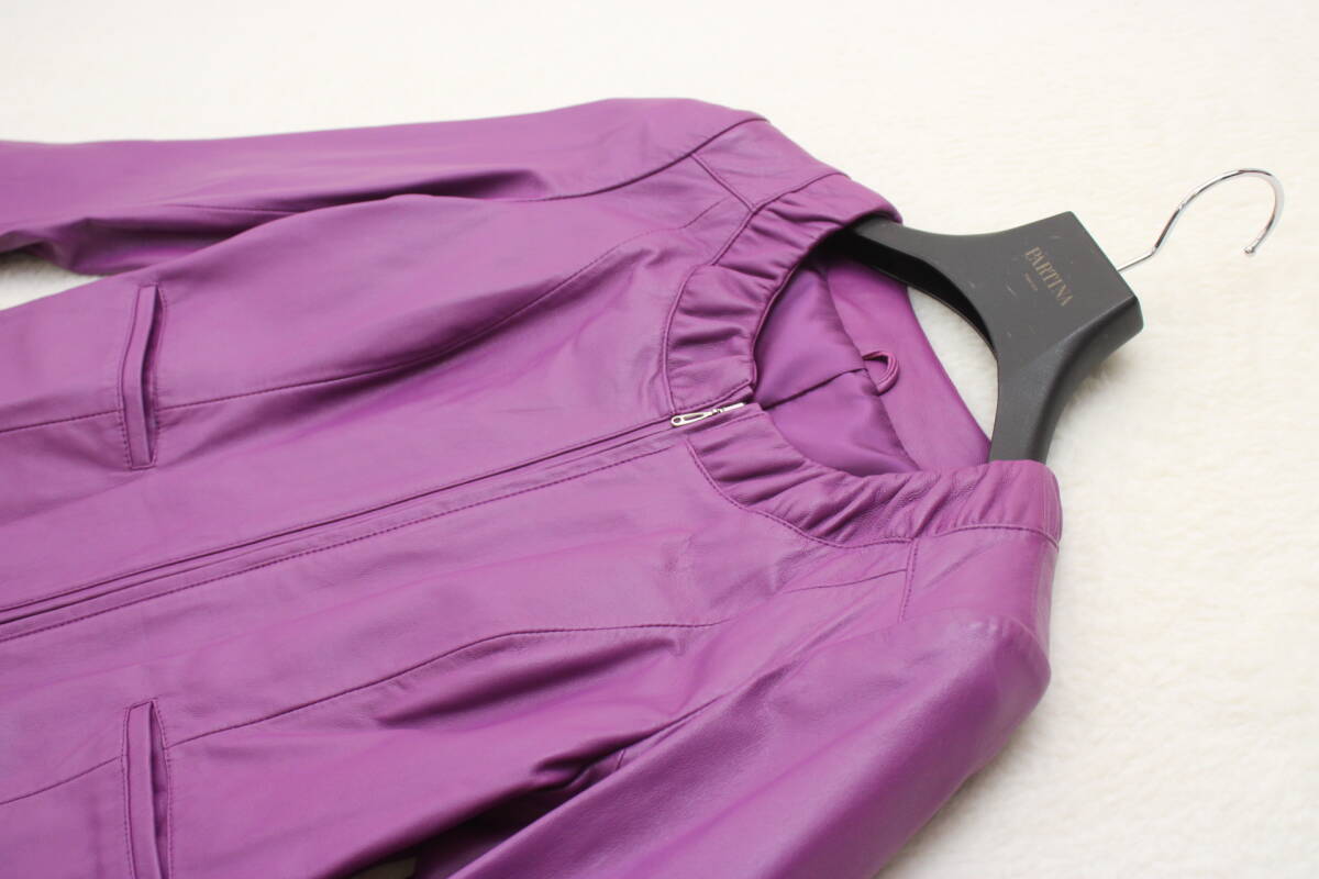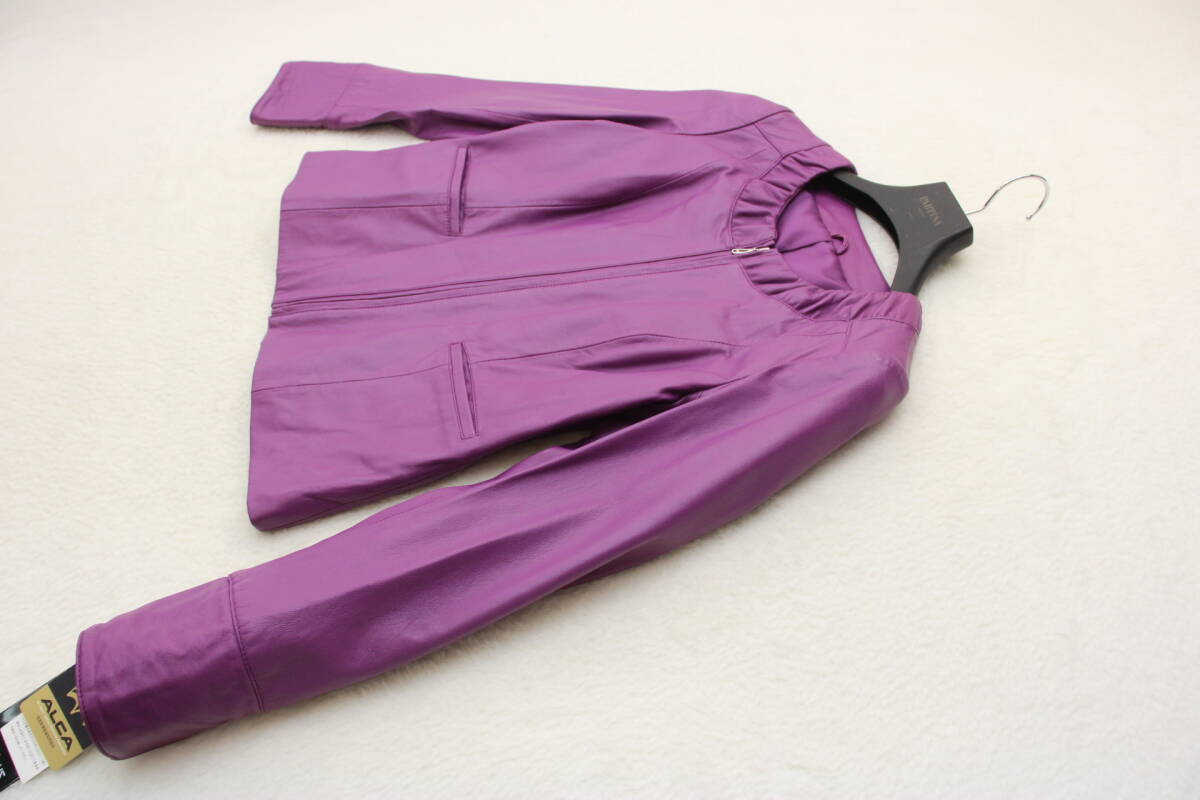 2011 新品タグ付 羊革ラムスキンノーカラーレザージャケット 11号 定価¥47,000+税