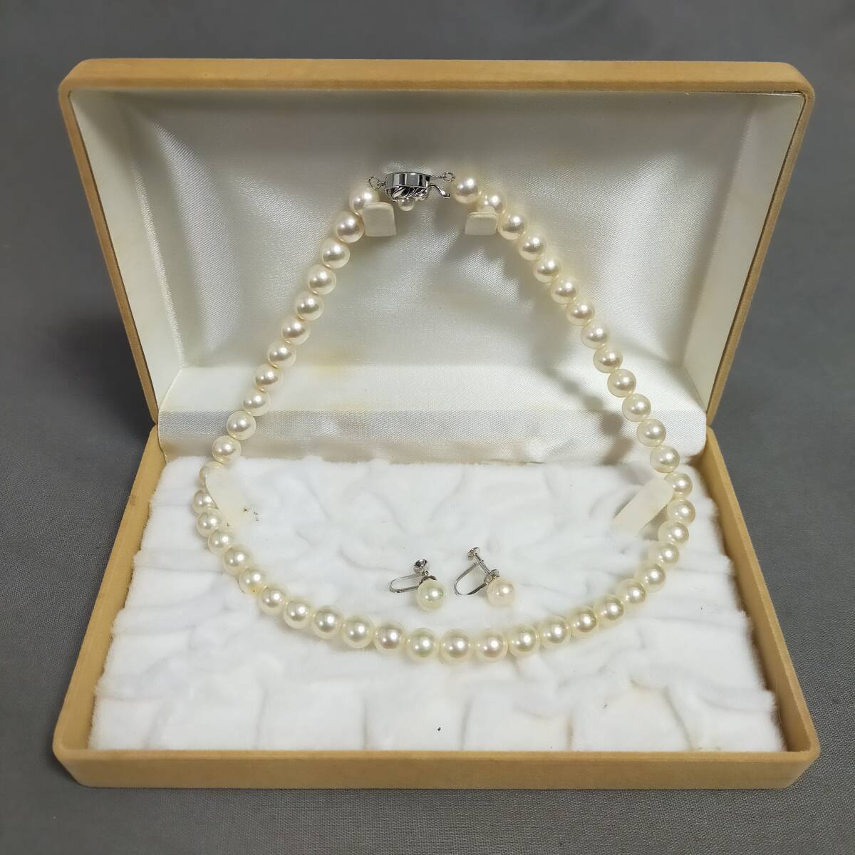 パール ネックレス イヤリング 真珠 留め具G・SILVER 総重量約46.01g 約8.0mm ヴィンテージ アクセサリー 【サイズ】 総重量 約46.01g 珠直径 約8.0mm その他、画像5・6・7にてご確認ください。 ※素人計測のため多少の誤差はお許しください。 【商品状態】 中古品の為、擦れ・キズ・汚れなどがございます。 商品状態につきましては、掲載写真をよくご確認ください。 写真に写っているものが全てです。 ※商品を飾っている台と計測器は撮影用になりますので付属しません。 目視にて検品チェックをしておりますが見落としがあるかもしれません。 商品状態は出品時の状態です。 実際に使用された際の経年による劣化や故障の保証は出来ません。 ご理解の上、ご了承頂ける方のみのご入札をお願い致します。 中古品につきお届け後の返品・交換などの補償は出来かねます。 ■全てのアクセサリーに関しまして 傷・汚れ・変色・石取れ・かけ等がある商品もございますので画像の確認を必ずよろしくお願い致します。天然石・模造石・真珠・養殖・フェイク・貴金属など本体に表記のないものは測定器が無いので真偽がわからずイミテーションの可能性があります。 | ||||||||||||||||